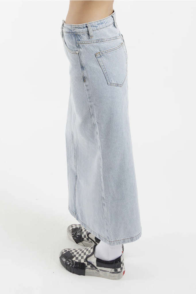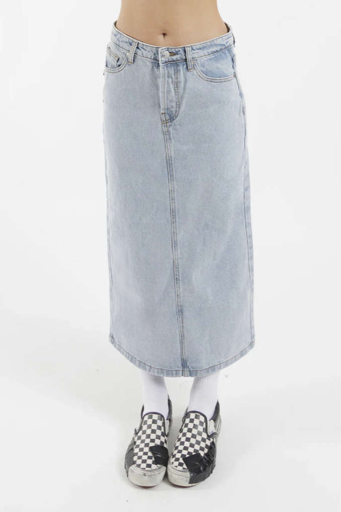 The 99 Skirt is our New 7/8ths Denim Skirt. A must have to add to your wardrobe to elevate your style for the season.