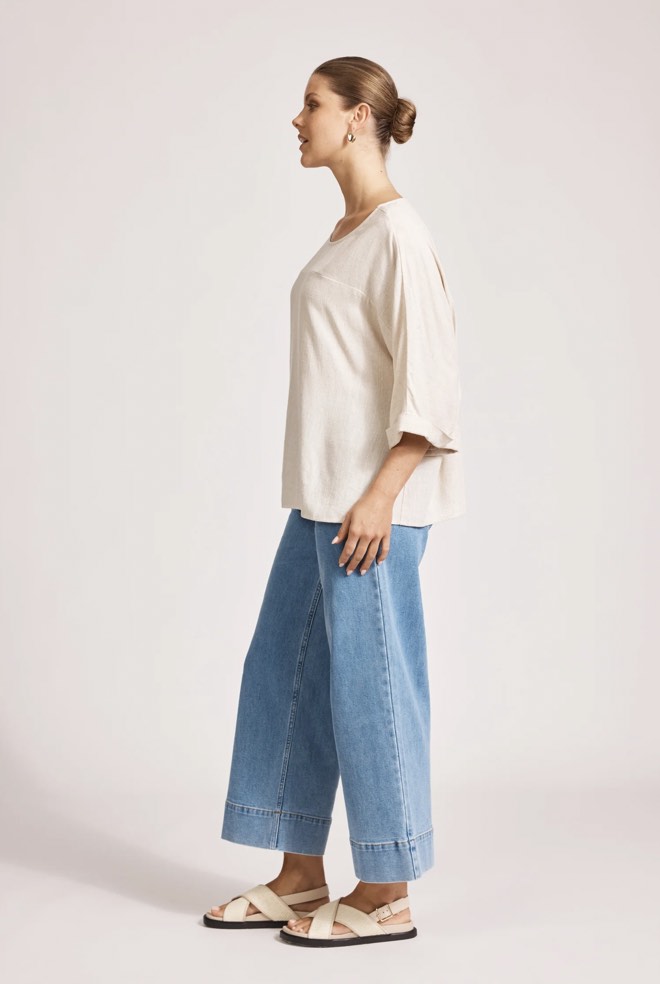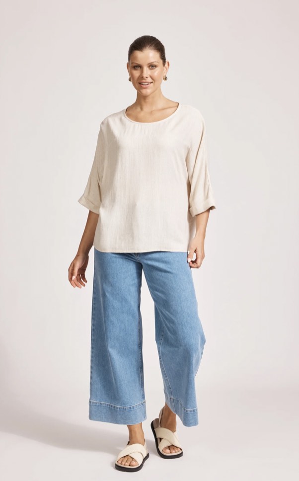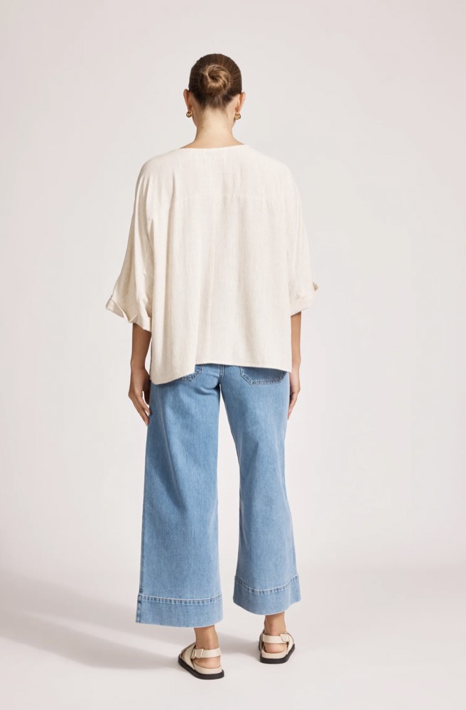 A bestselling silhouette, reimagined in a breathable linen-cotton blend. Designed in a boxy fit with cuffed sleeves, topstitch seam detail at the neckline, and soft drape. This is a one-size style, that comfortably fits AU 10-18.