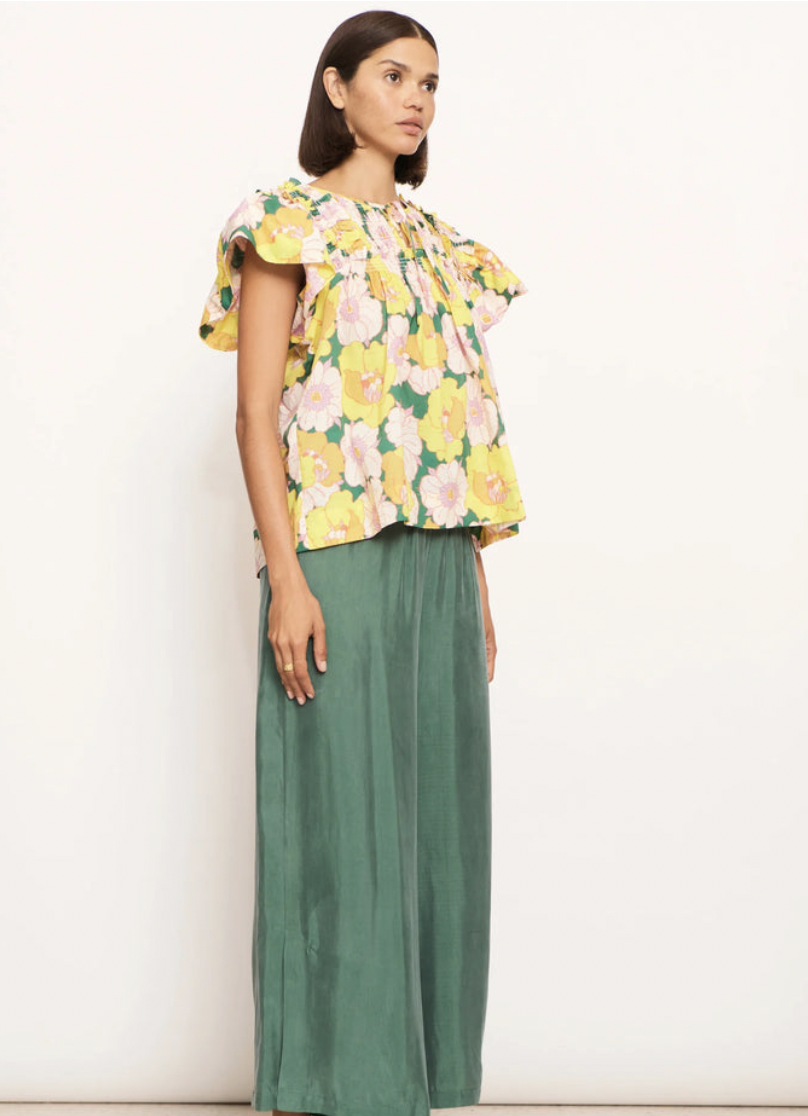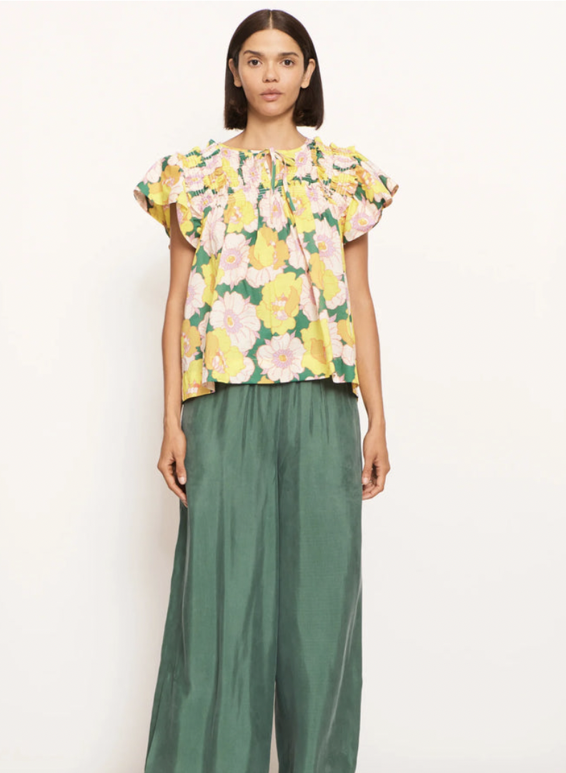 The Anemanie Top is a stunning top featuring a stunning Liberty Of London print. It has tiny ruffles and shirred detailing in a flowy, feminine silhouette