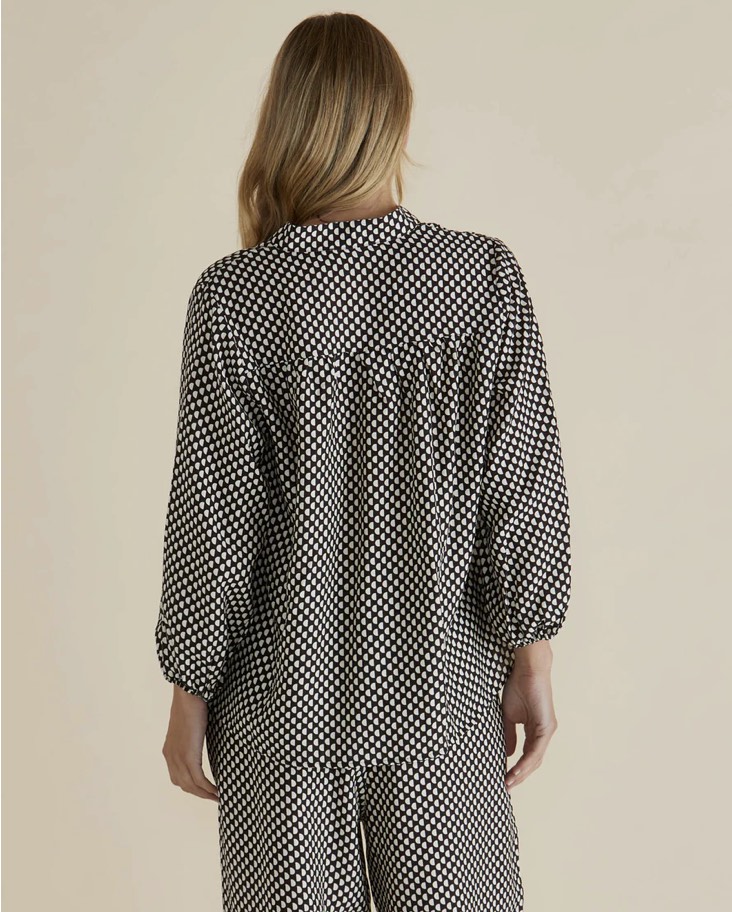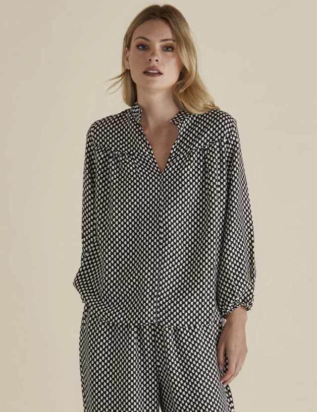 The Apollo Blouse is a relaxed fit top made from soft crinkle fabric. Featuring a v-neck opening, front and back yoke panels, and elastic cuffs, this blouse offers a chic, effortless look. Whether paired with pants or skirts, the relaxed fit ensures you stay comfortable while looking polished.