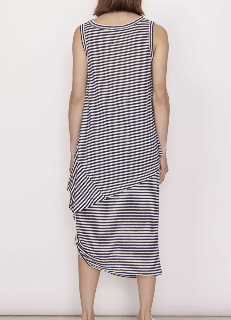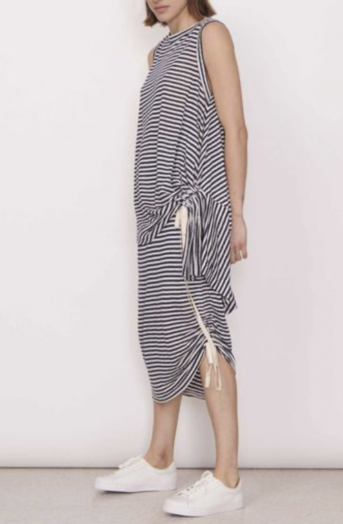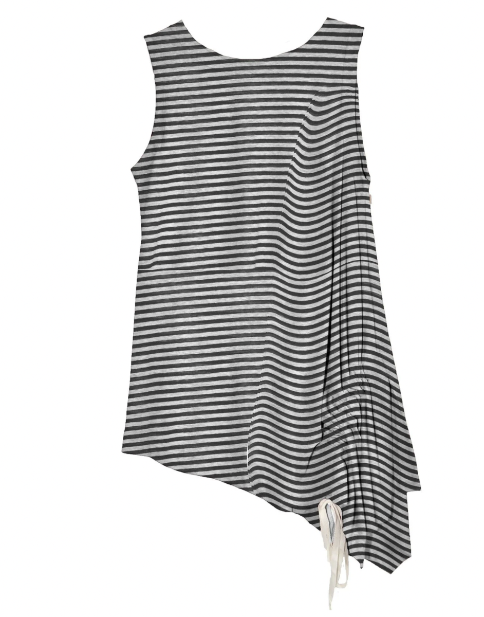 Made from 100% linen, the Aria Stripe Tank is the perfect throw on style, it  features a sleeveless crew neck with an asymmetrical hem which can be ruched at the front by pulling the drawstring at the hem; designed by Australian designer POL Clothing.