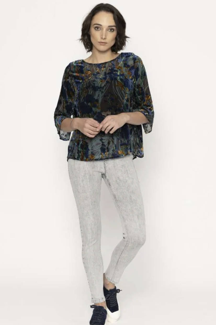 This new season top is an absolute stunner. With velvet print detailing, you can dress up or down. In moody tones that pair with anything.