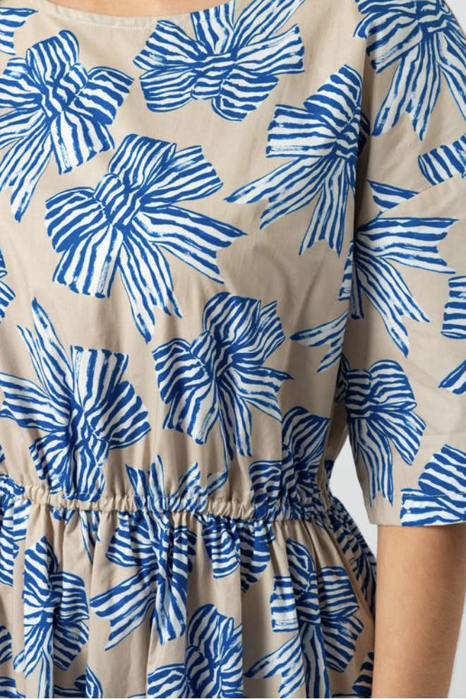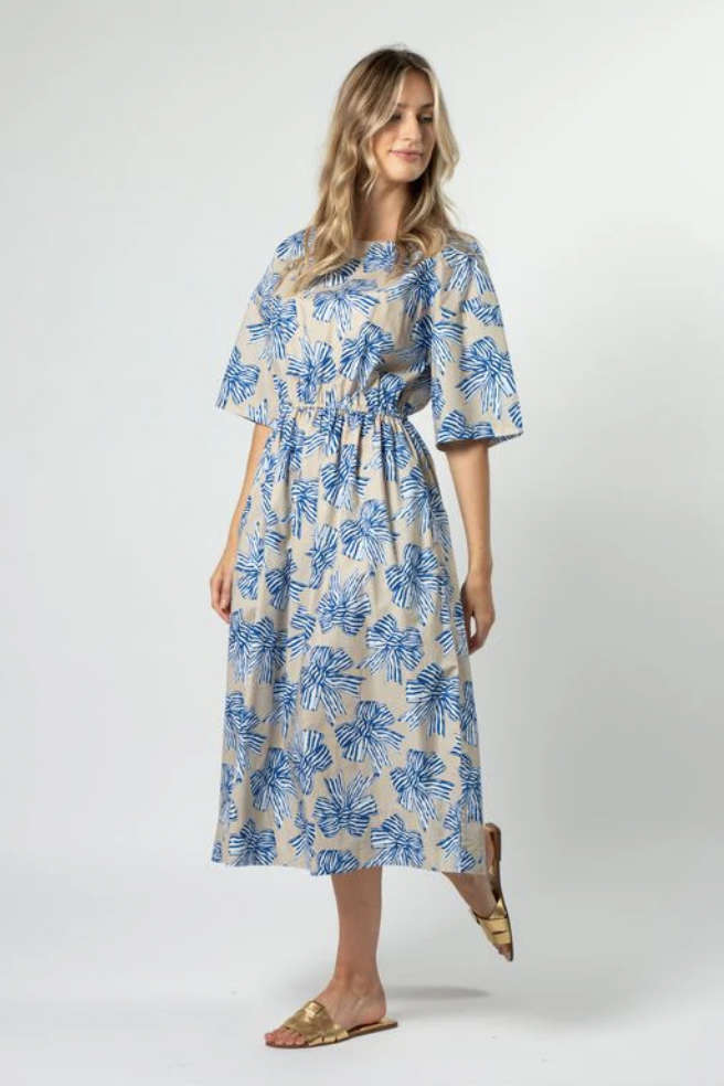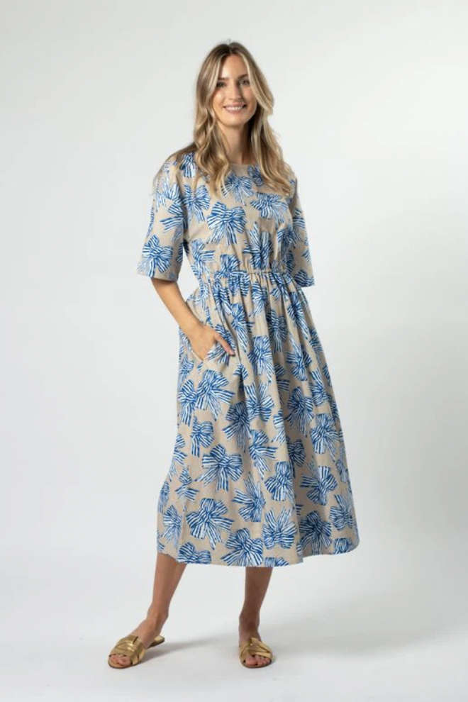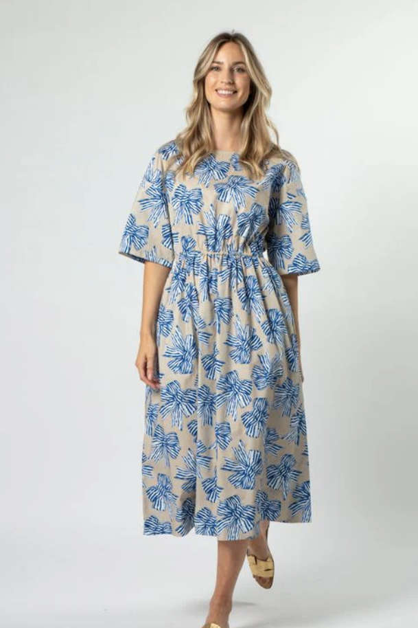 We are just in love with this gorgeous new Carrie Dress from Stella & Gemma. It features a super cute bow print that brings a fresh summer vibe! It is a midi dress with dropped shoulder and A line shaped sleeve and skirt and in 100% Cotton.