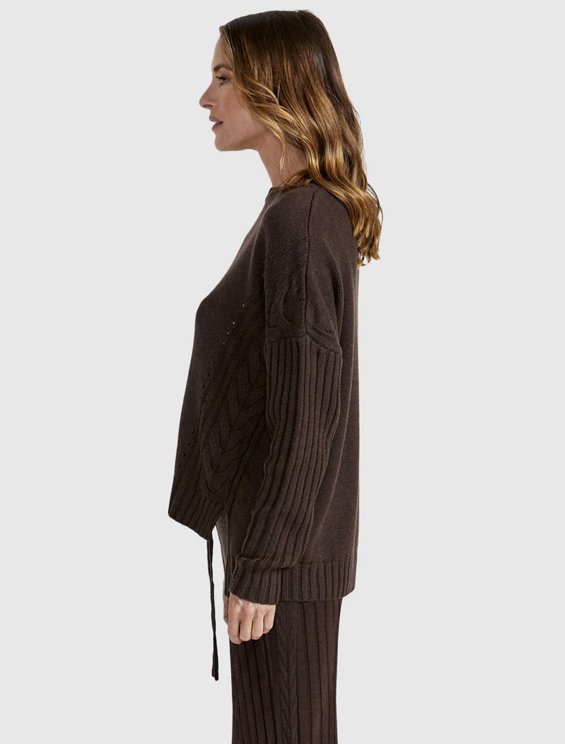 The Catalina Knit is a refined winter essential, featuring a round neckline and cable detail on the sleeves. Ribbing on the sleeves adds a touch of texture, while the soft knit fabric ensures comfort and chic elegance. This piece offers a sophisticated, regular fit ideal for winter days.