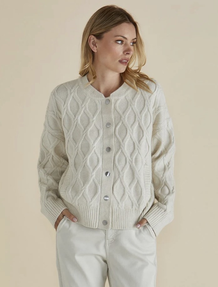 The Celene Knit Cardigan is the perfect layering piece for an easy, comfortable look. Made from soft stretch knit fabric, it features a crew neck and snap button fastening for a relaxed yet stylish fit. The ribbed hem adds texture, while the relaxed silhouette makes it perfect for layering over any outfit. Whether worn with jeans or a dress, this cardigan is a chic and cozy addition to your wardrobe, making you look Oh So Pretty!