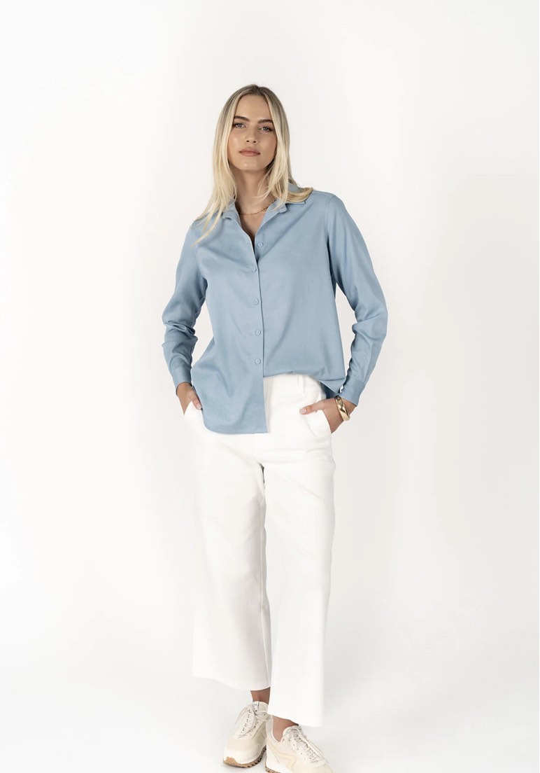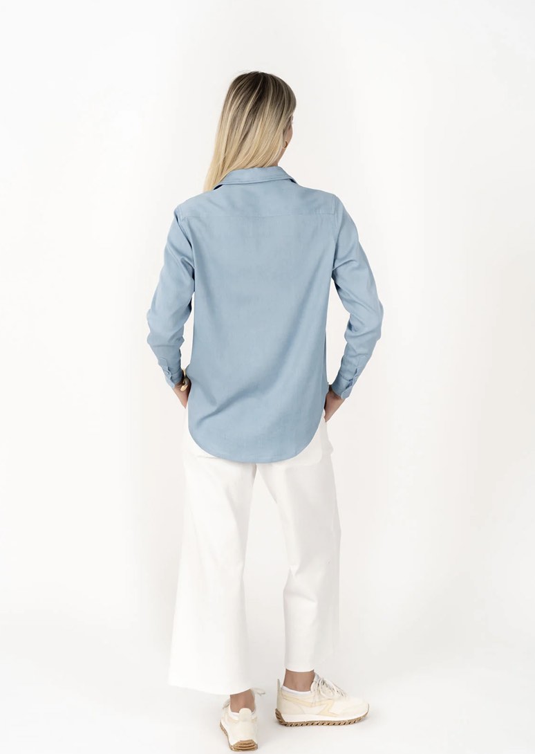 A versatile staple piece with a contemporary twist that can worn on its own or layered across the season. This boxy style button-down shirt with its longer length allows endless styling options – half tuck, no tuck, tuck in for a polished look. The perfect shirt for a seamless transition from smart to casual settings.