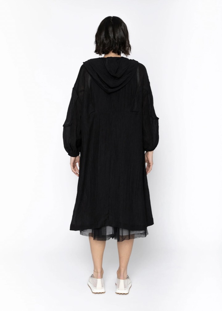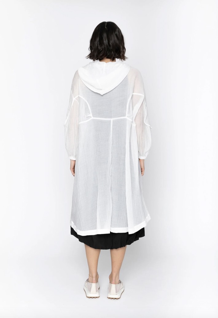 Add an element of style to your wardrobe with the Coen Jacket. This long jacket features a convenient hood and zip closure, as well as front pockets. It is a gorgeous see through style, see the picture of the white style for reference
