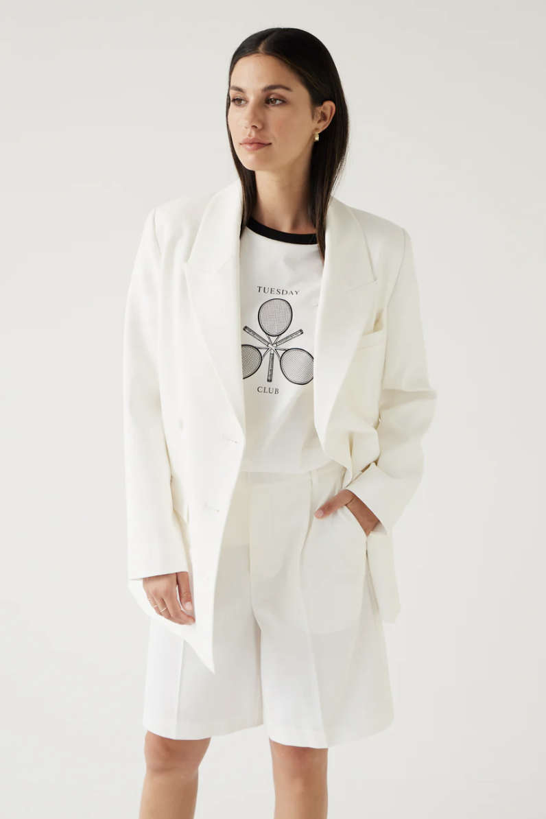 A new addition to your TUESDAY wardrobe, these Bermuda style shorts are a must-have! Taking you from work to weekend, they look equally fab with sneakers as they do heels. Pair with the matching Dove Blazer or Culver Vest for a sophisticated co-ord look.
