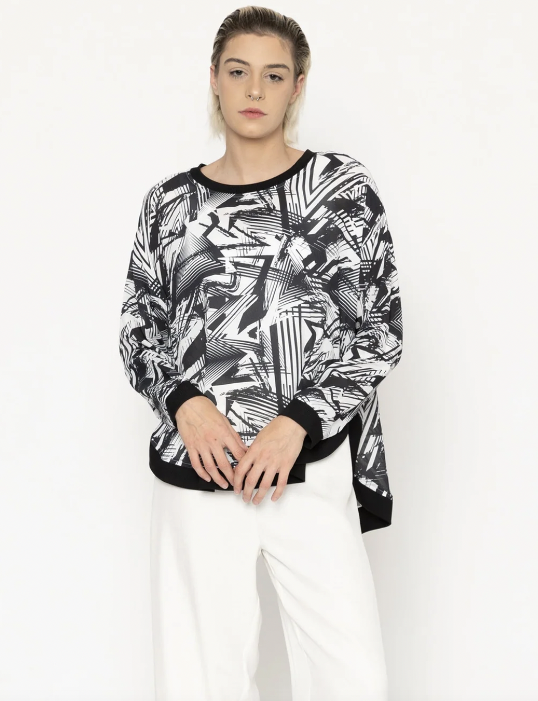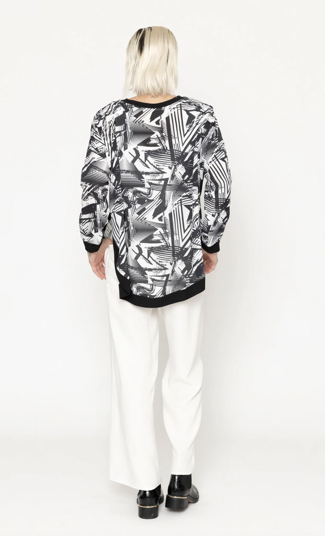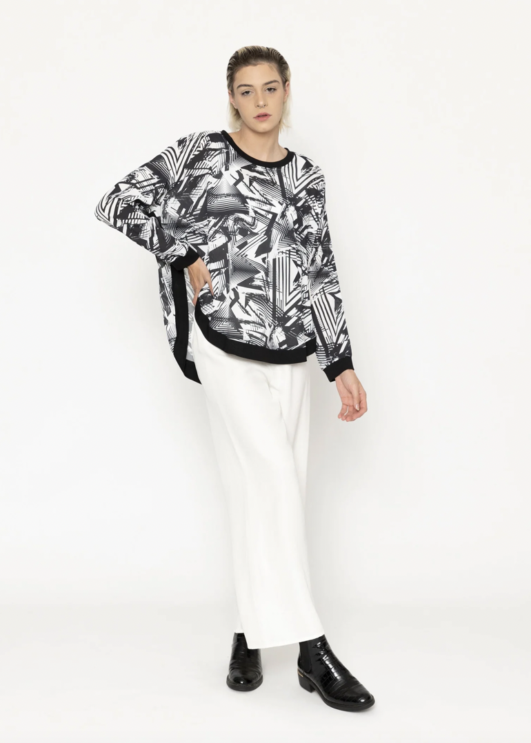 The Dallas Top is super cute with its modern black and white print and contrasting hem.
