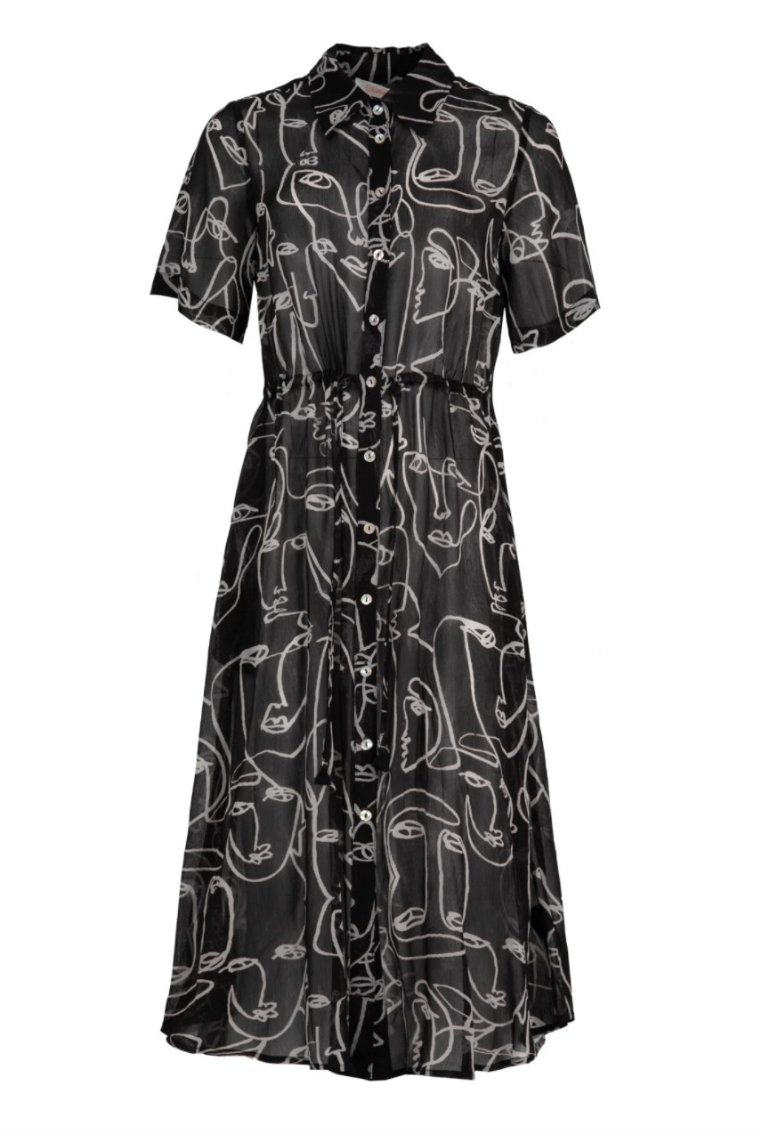 A monochrome palette and a fluid fabrication fuse to bring you the ‘Drawn to Perfection’ dress. Crafted in the ‘Face to Face’ viscose yoryu, this dress sports a button through front and a drawstring toggle at the waist front. Taking you from desk-to-dinner with ease this dress is most covetable this season.