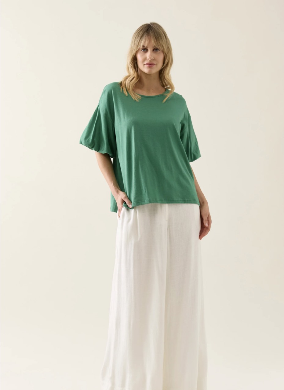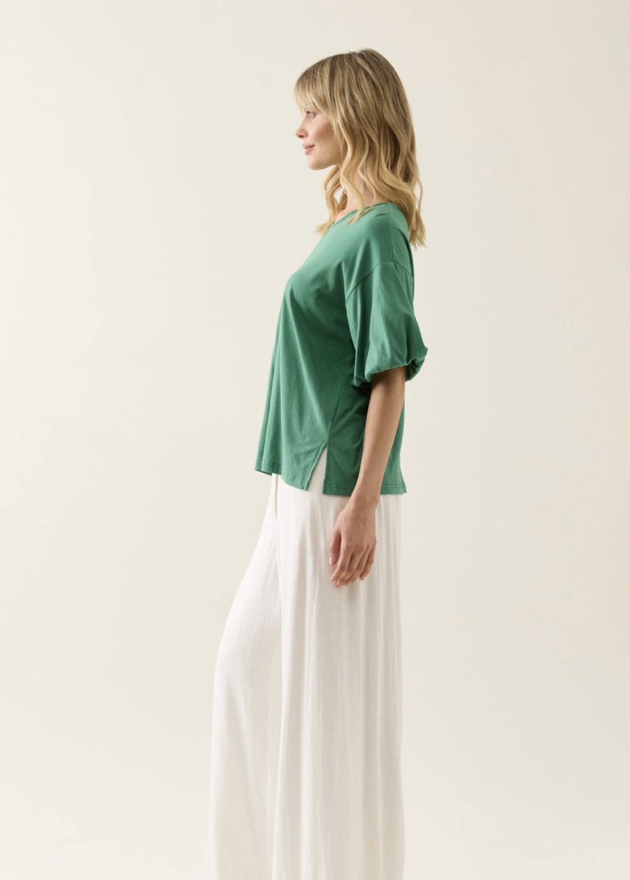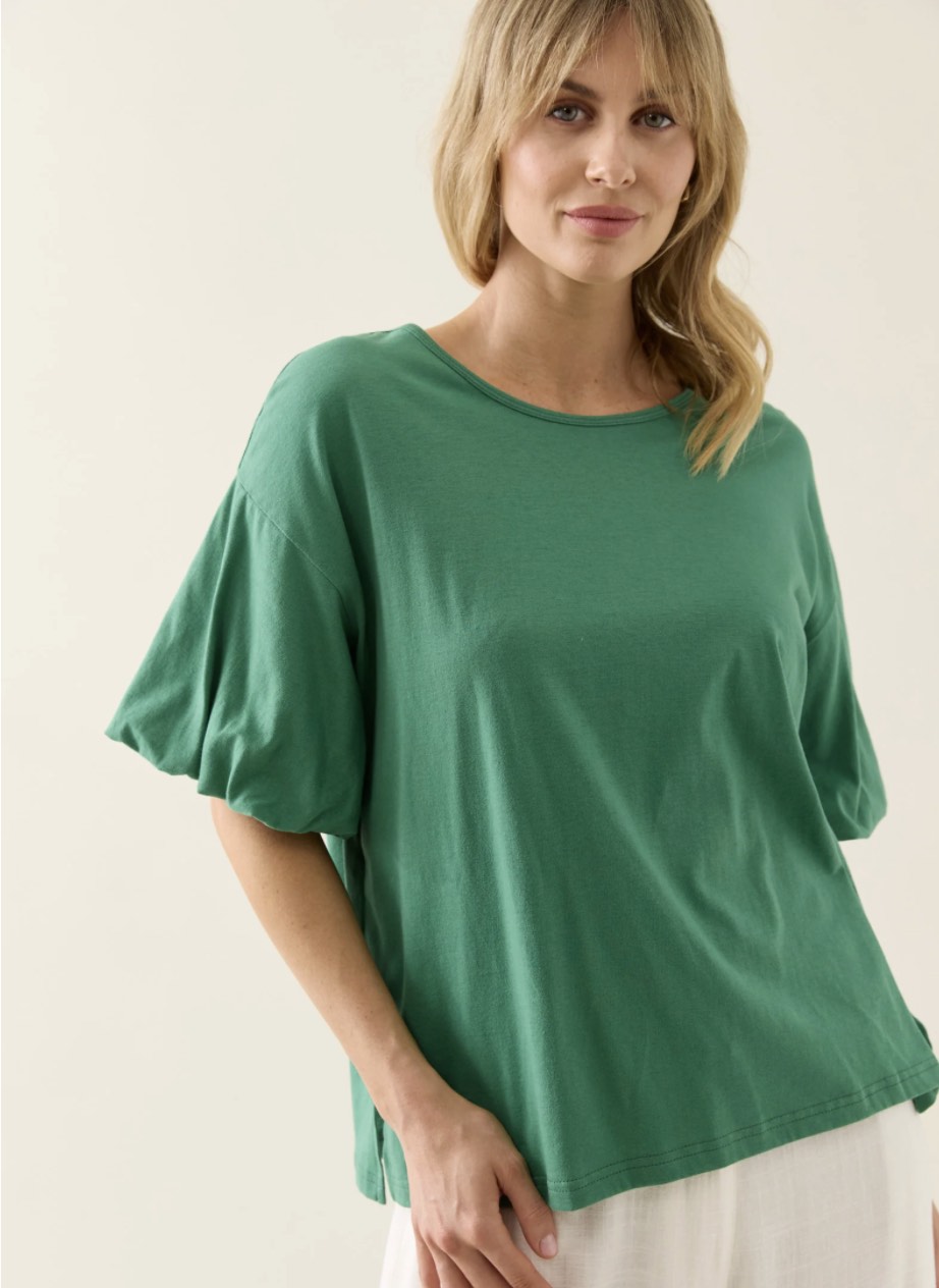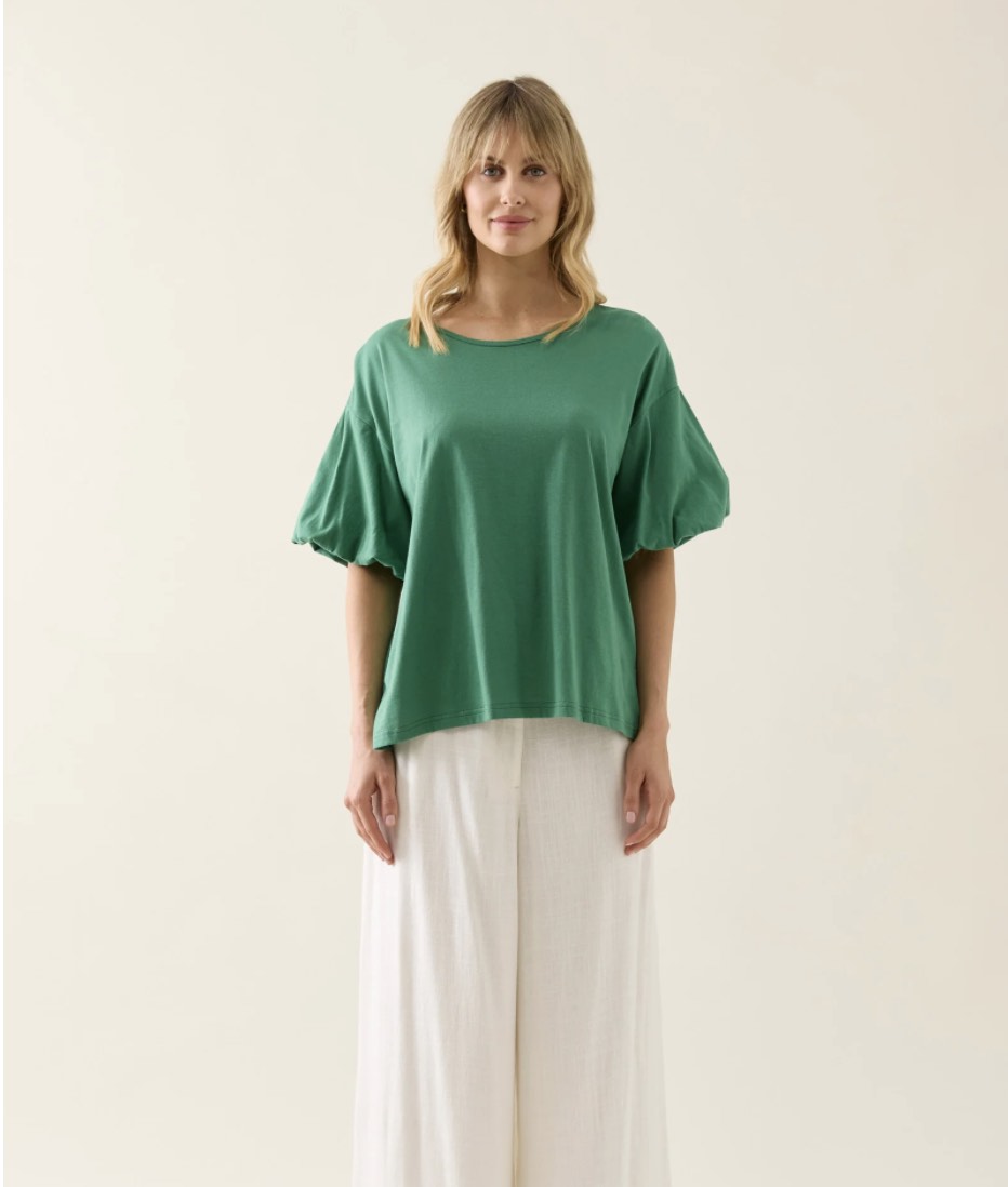 A feminine twist on an everyday classic. Crafted from soft, breathable cotton, the Edith T-Shirt offers relaxed comfort with elevated style. Featuring a flattering cut with a gentle drape, classic round neckline, and subtle statement puffed sleeves.
