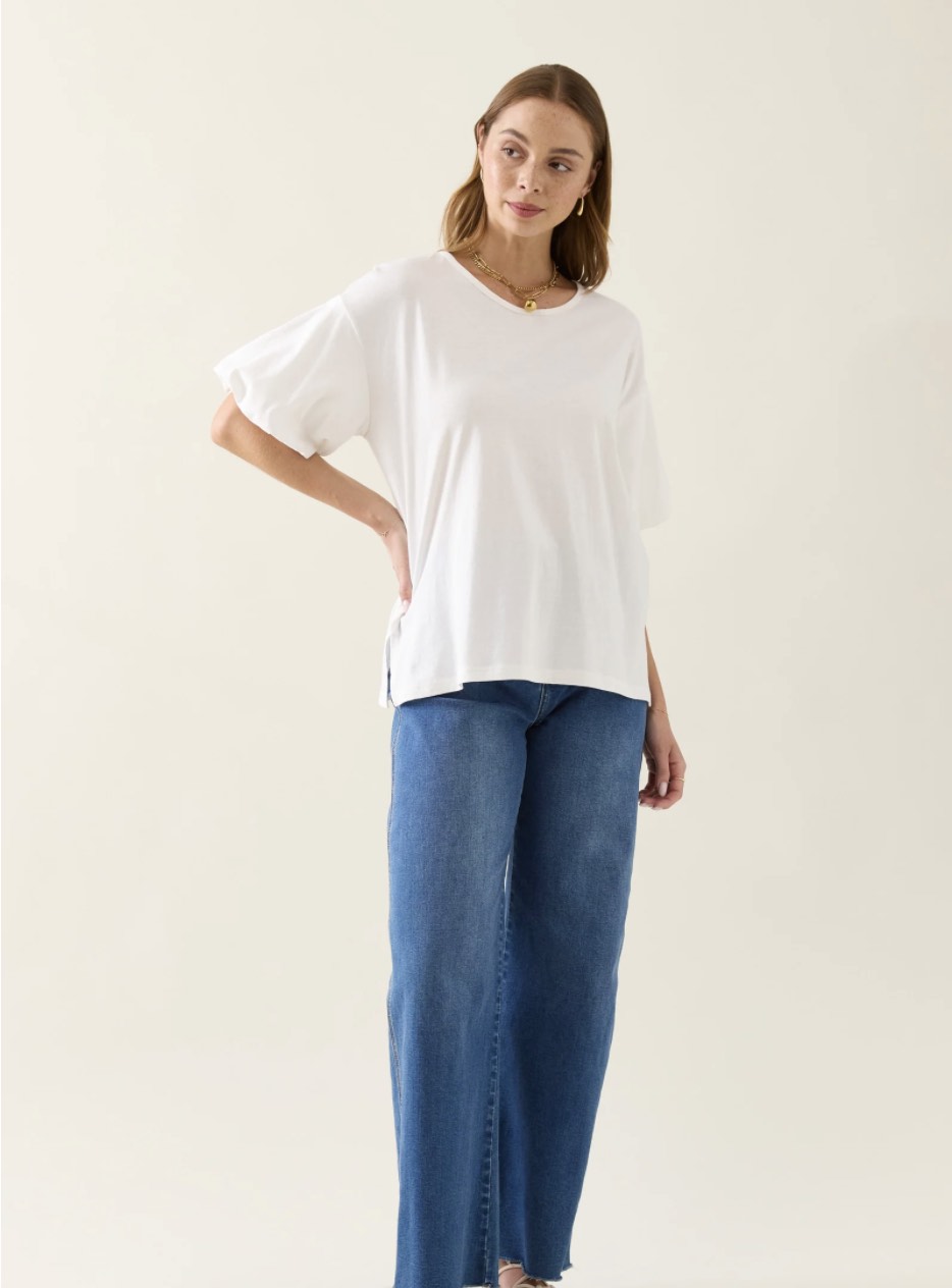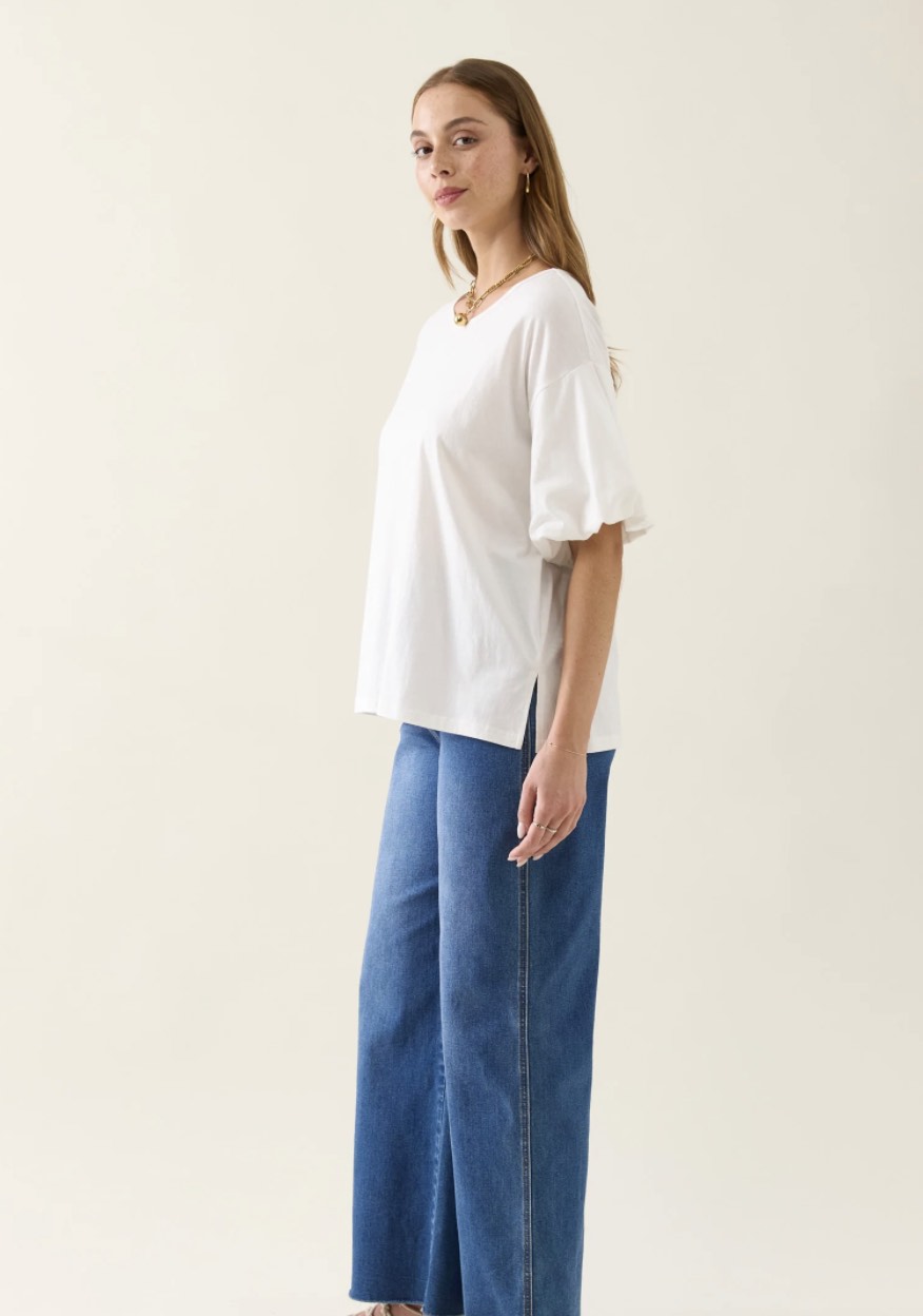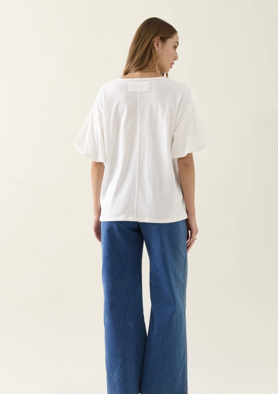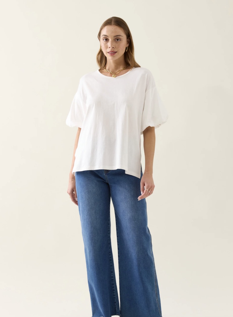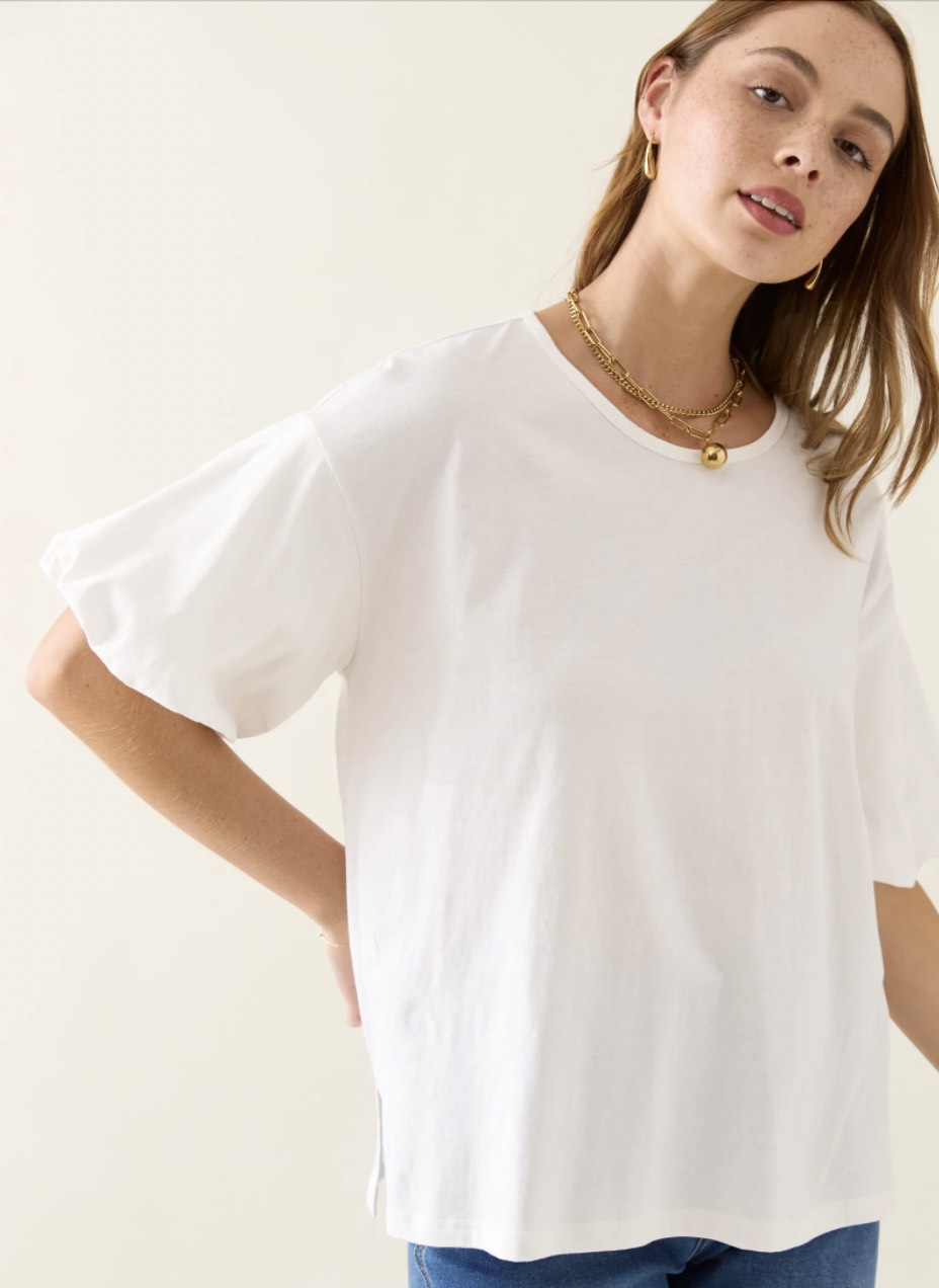 A feminine twist on an everyday classic. Crafted from soft, breathable cotton, the Edith T-Shirt offers relaxed comfort with elevated style. Featuring a flattering cut with a gentle drape, classic round neckline, and subtle statement puffed sleeves.