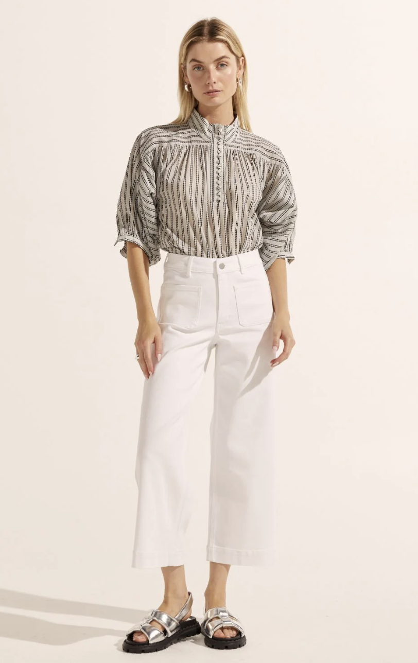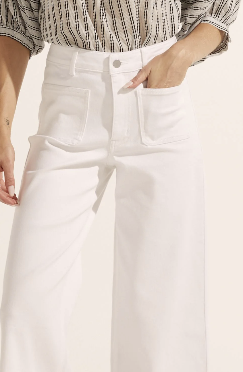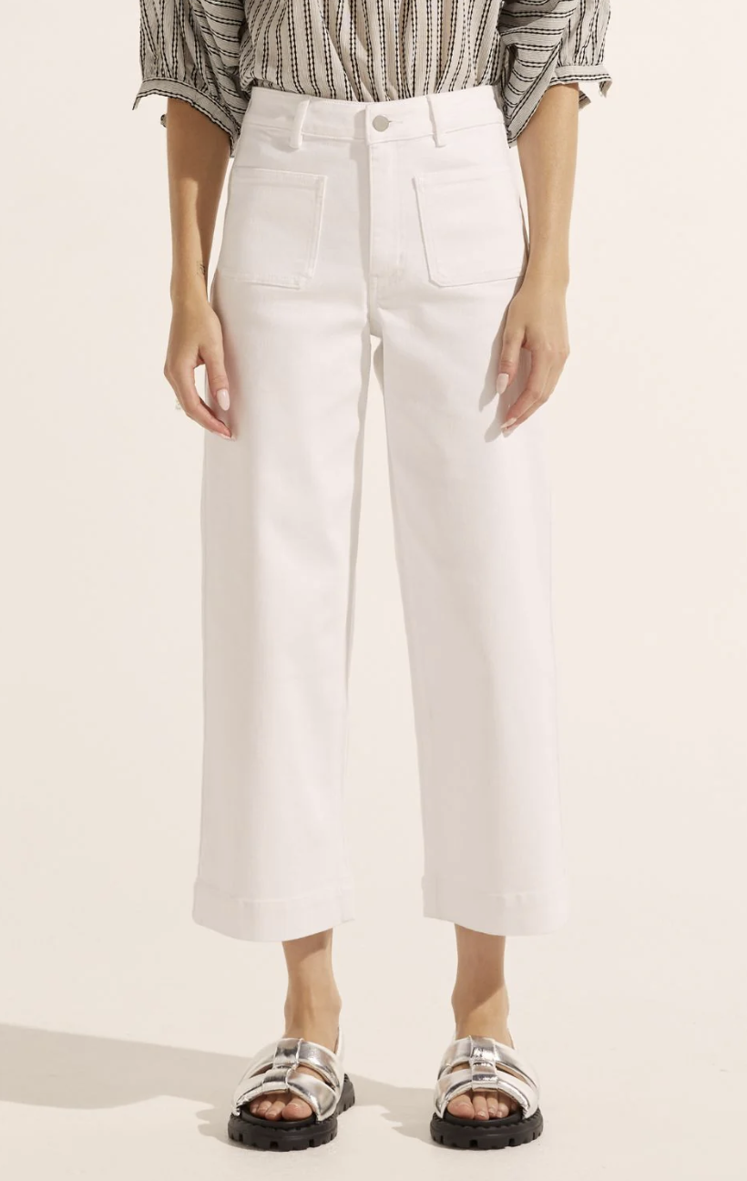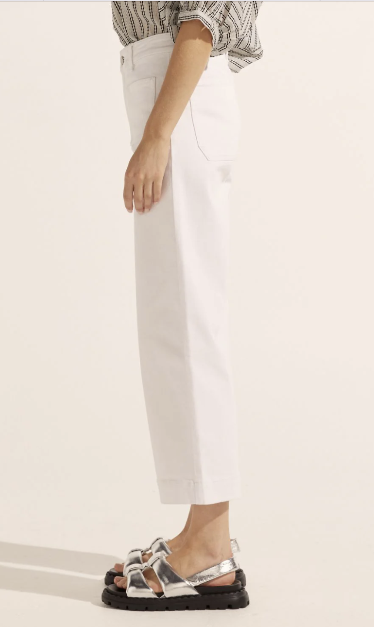 The Establish Jeans are a wide leg jean reworked for spring to finish in a fresh cropped length. emphasised by a deep hem and playful front patch pockets let the establish be your go-to denim for the season