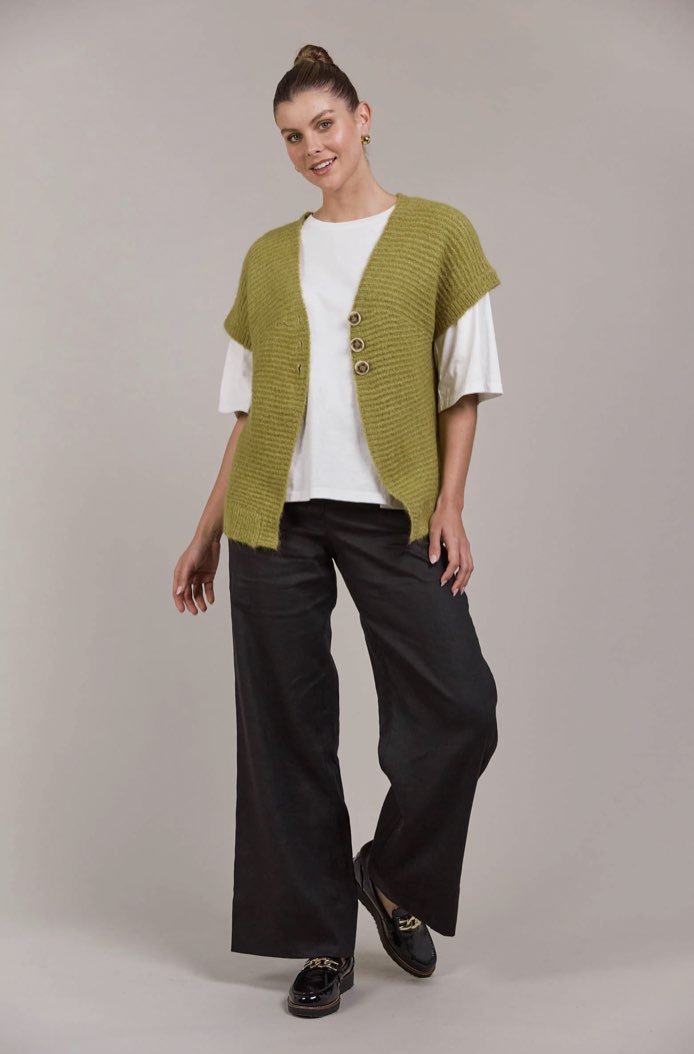 Redefine layering with the stylish Folie Button Vest. Designed to stand out, this vest showcases a V-neck, short sleeves, and a three-button closure with contrasting buttons. Its textured wool-blend fabric adds a sophisticated touch and complements various materials when layered. Achieve a polished look by styling it over a linen shirt, pairing it with statement pants, and finishing with tonal loafers.