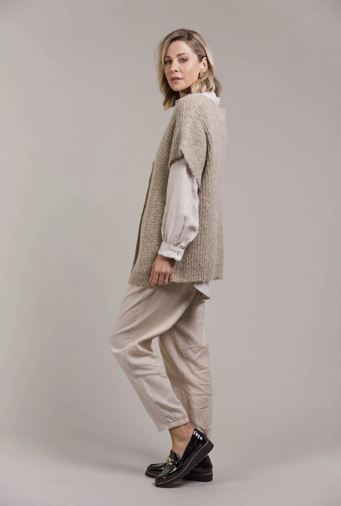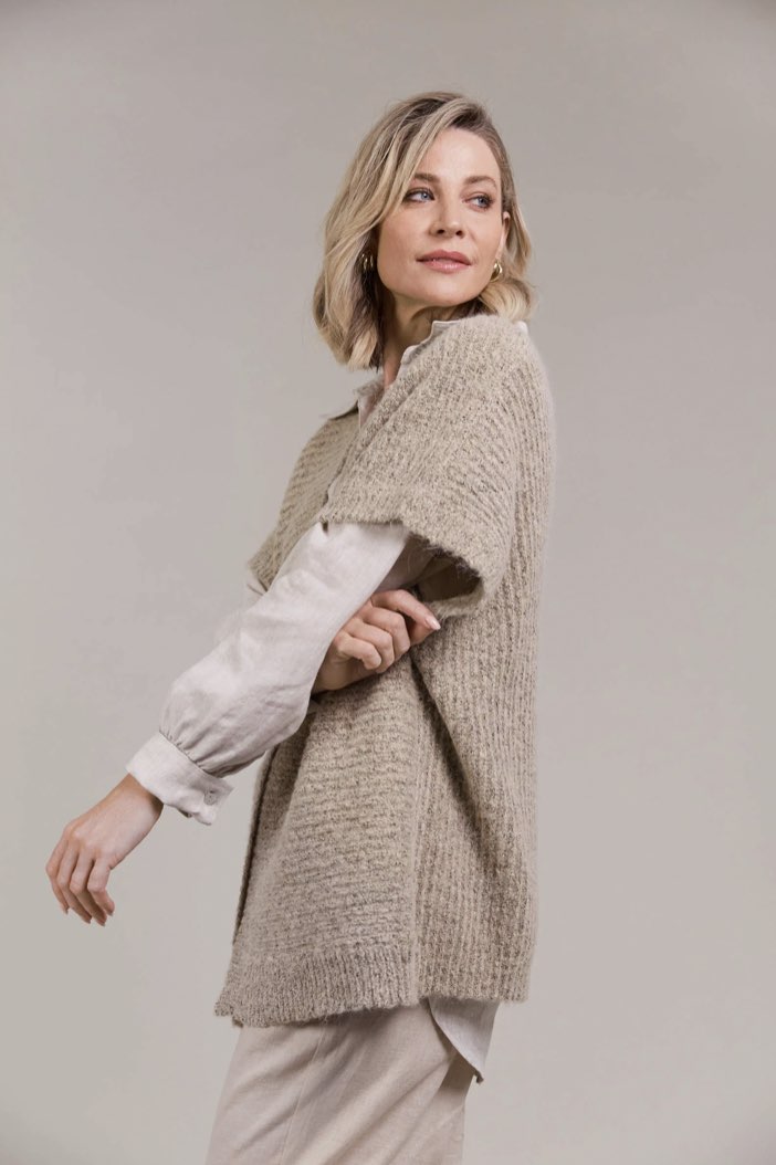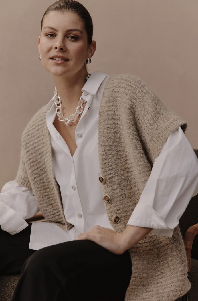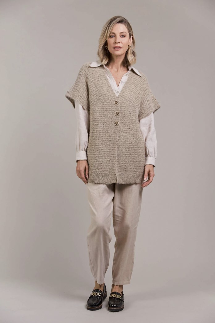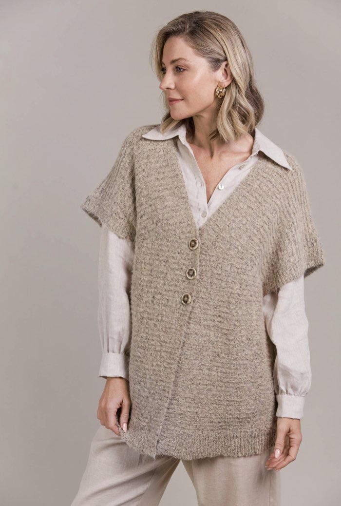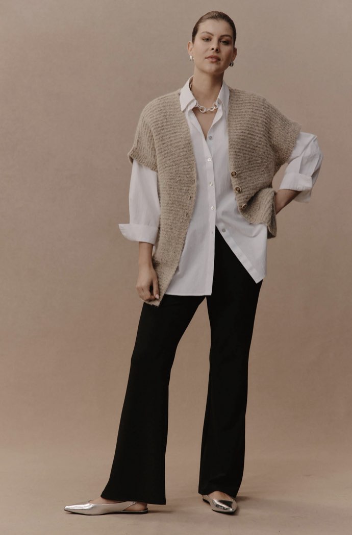Redefine layering with the stylish Folie Button Vest. Designed to stand out, this vest showcases a V-neck, short sleeves, and a three-button closure with contrasting buttons. Its textured wool-blend fabric adds a sophisticated touch and complements various materials when layered. Achieve a polished look by styling it over a linen shirt, pairing it with statement pants, and finishing with tonal loafers.