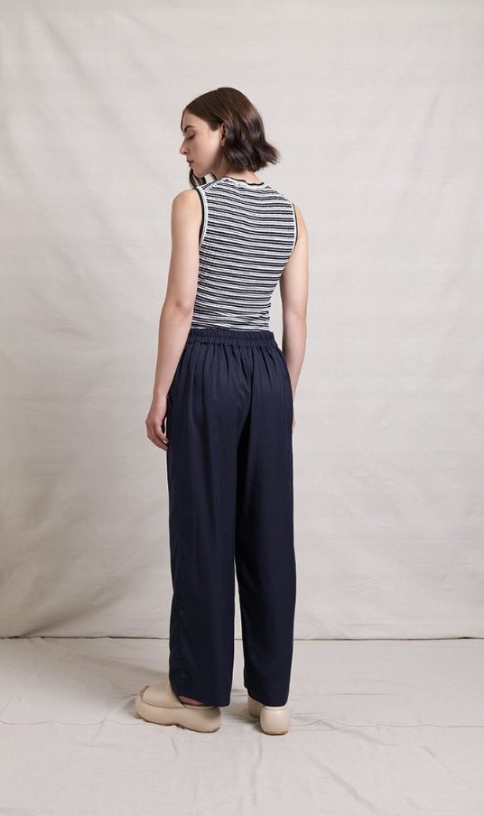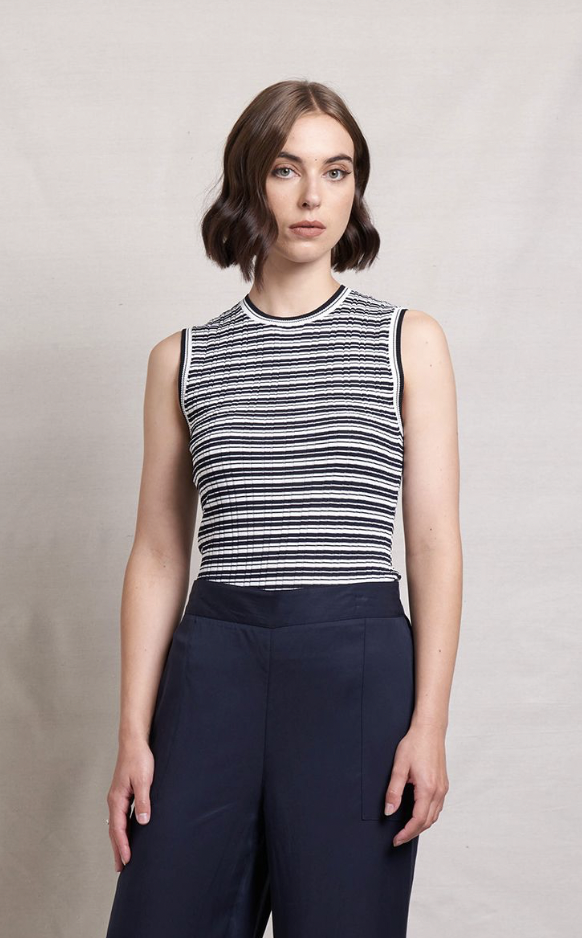 The Good Yarn Tank by Neris is a slim fit top with ribbed panelling and a crew neck. This neat, fitted tank has a smooth finish to it making it an elevated basic. Designed in Christchurch, New Zealand.