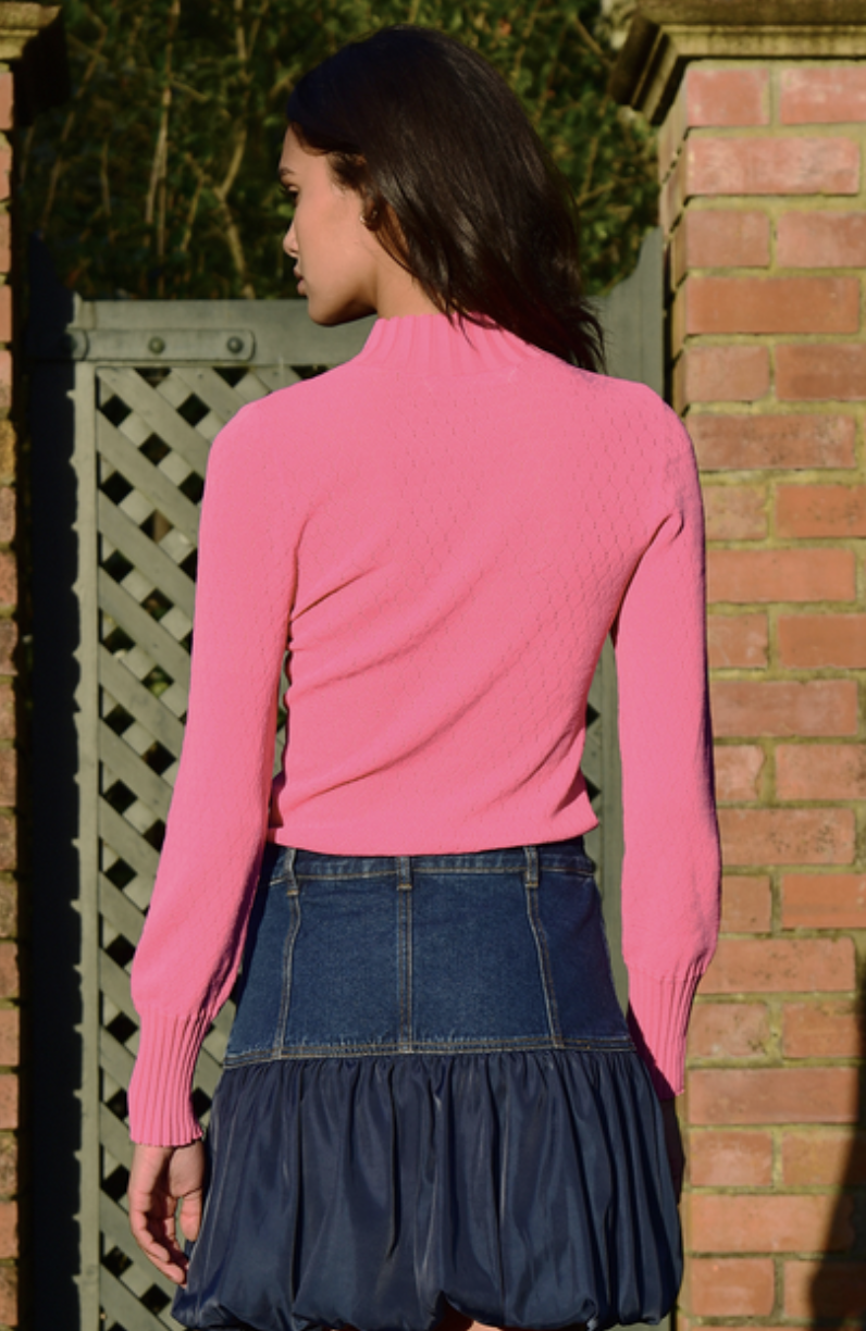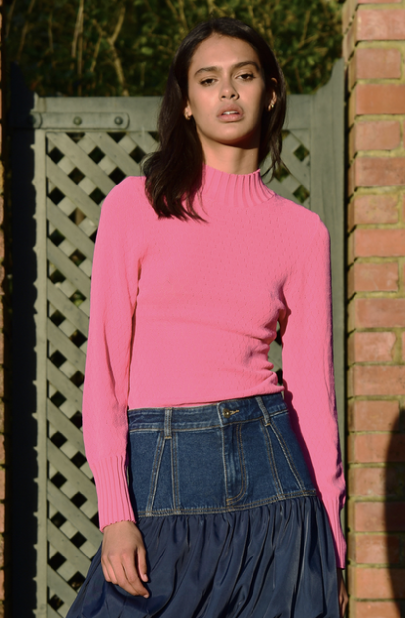 Now is the time to update your wardrobe knits, with the Coop ‘Hearten Up’ top. A classic and a staple, this is a must have piece this season. With a mock neck and ribbed cuffs, this top is adorned with fine hearts in the knit, a stand out detail elevating this top with a hint of flirty fun.