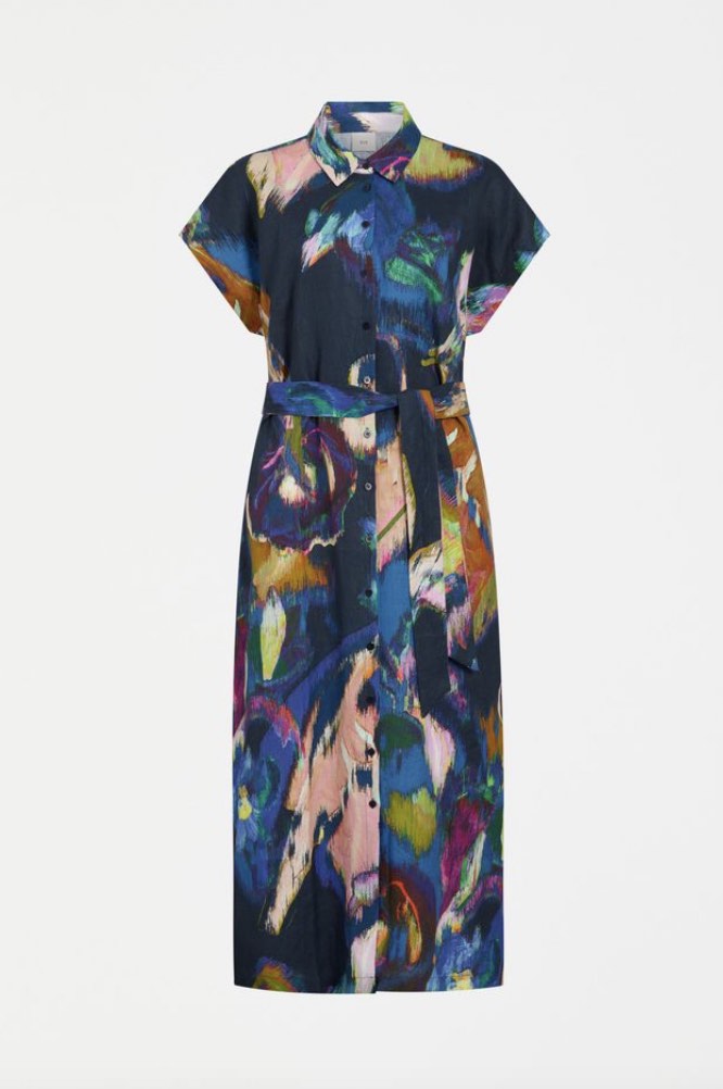 The Lato Dress is a stunning new piece from ELK. It feaures long sleeves with a dropped shoulder. It has two back tucks on sleeve give it volume and it has a wide sleeve cuff with buttons and buttonholes. It has a slightly dropped waist seam with tucks on bodice and skirt and a button through with placket. It has a shirt collar and collar stand and it iss midi-length. It has a side and seam pockets