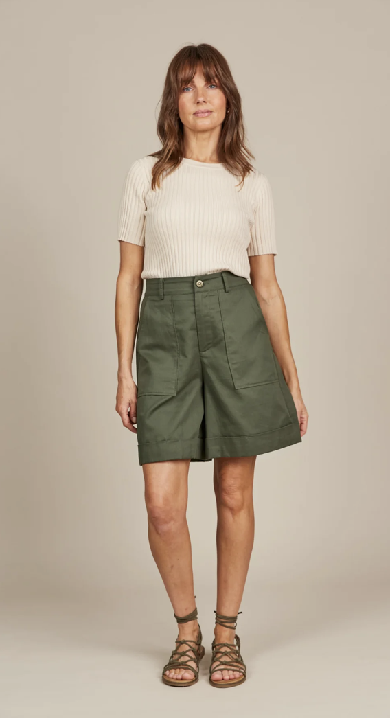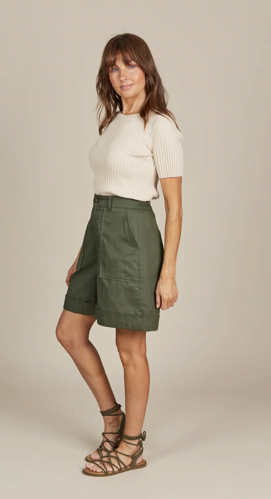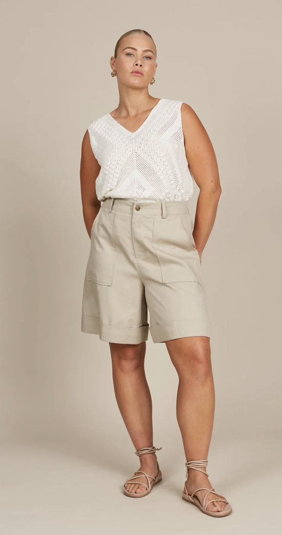 A chic twist on a seasonal staple, the Lucille Bermuda Short offers a sleek, high-waisted design for a refined look. Crafted with comfort in mind, it features a half-elastic waist and a secure button and zipper fly closure. Whether enjoying a beach picnic or strolling through the city, pair it with a tank and strappy sandals for an effortlessly cool ensemble perfect for those warm, sunny days.