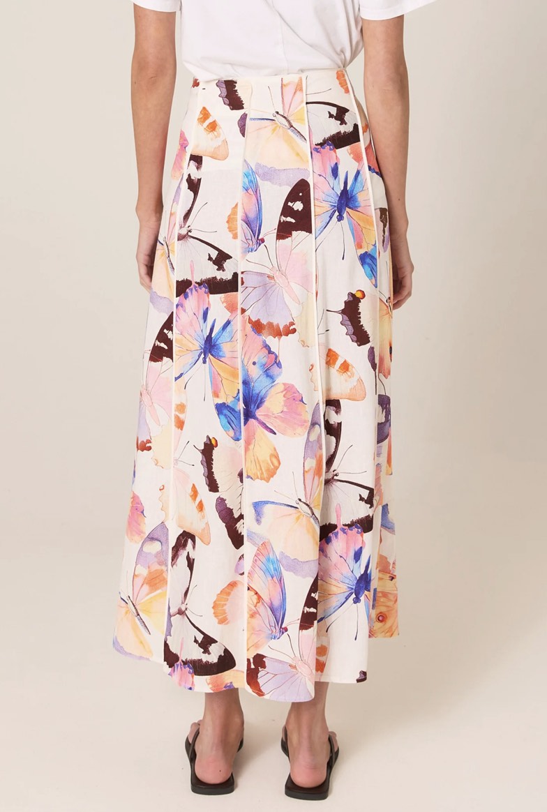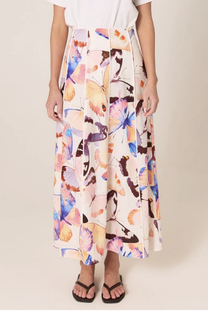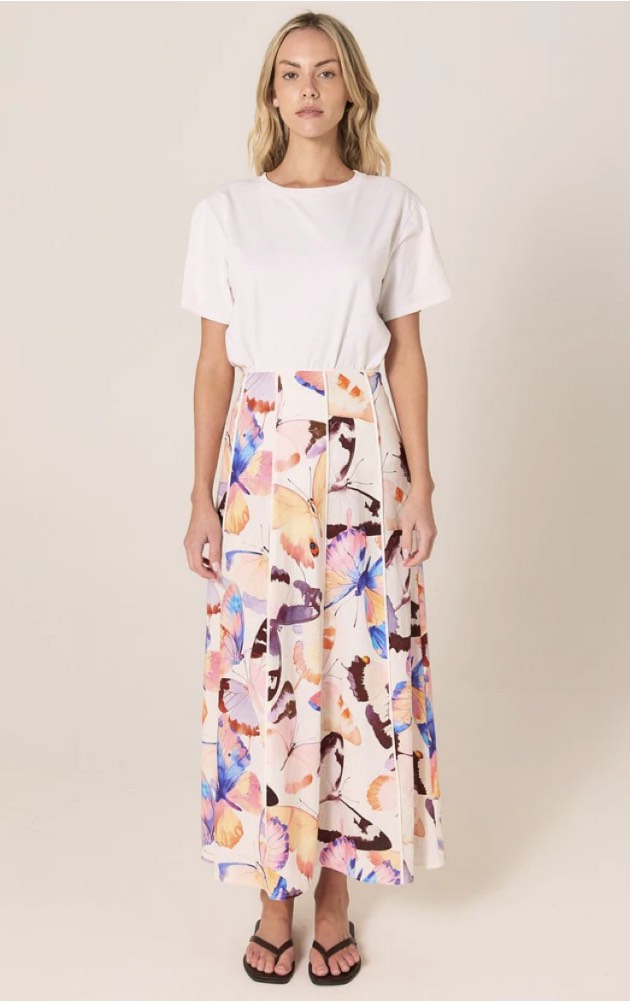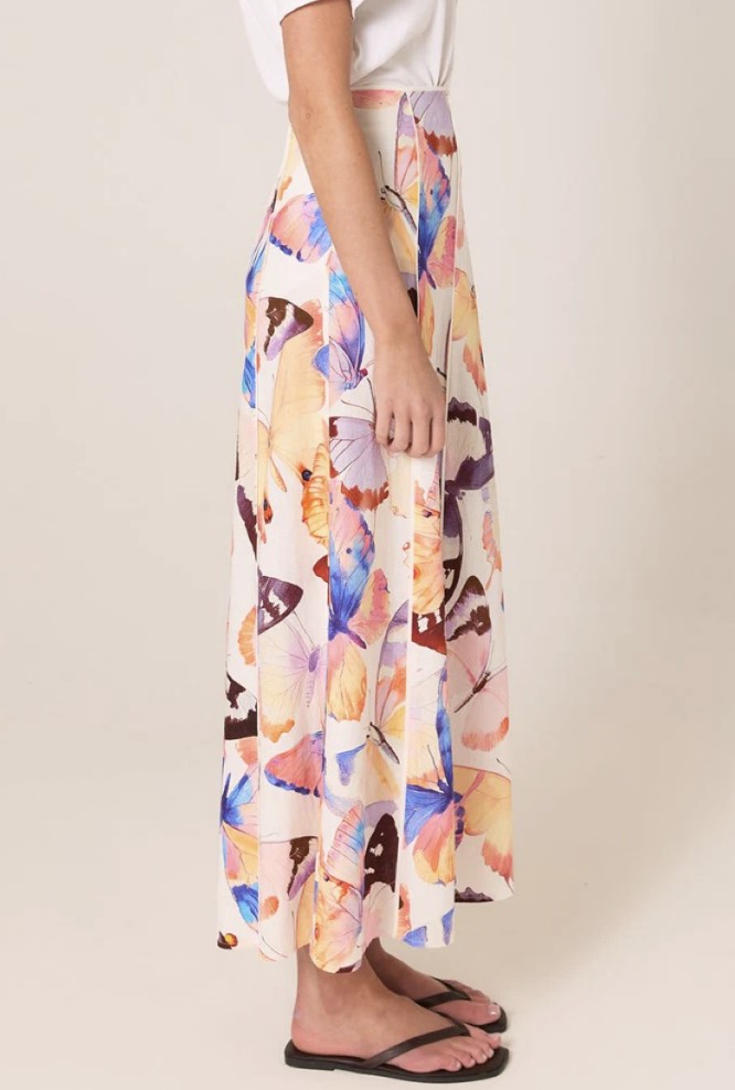 The Mariposa Print Maxi Skirt is a refined statement in an exclusive butterfly print. Its flowy A-line silhouette is elevated by panelled construction for soft movement. Lightweight, breathable fabrication keeps it effortless and easy to wear. A classic maxi with an elegant, sophisticated drape.