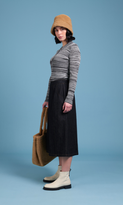 The Marle & Me Top is made from a retro space dye, the fabrication is ribbed so it has lots of stretch and gently hugs the body. The top features slim sleeves and a button up front with a collar.