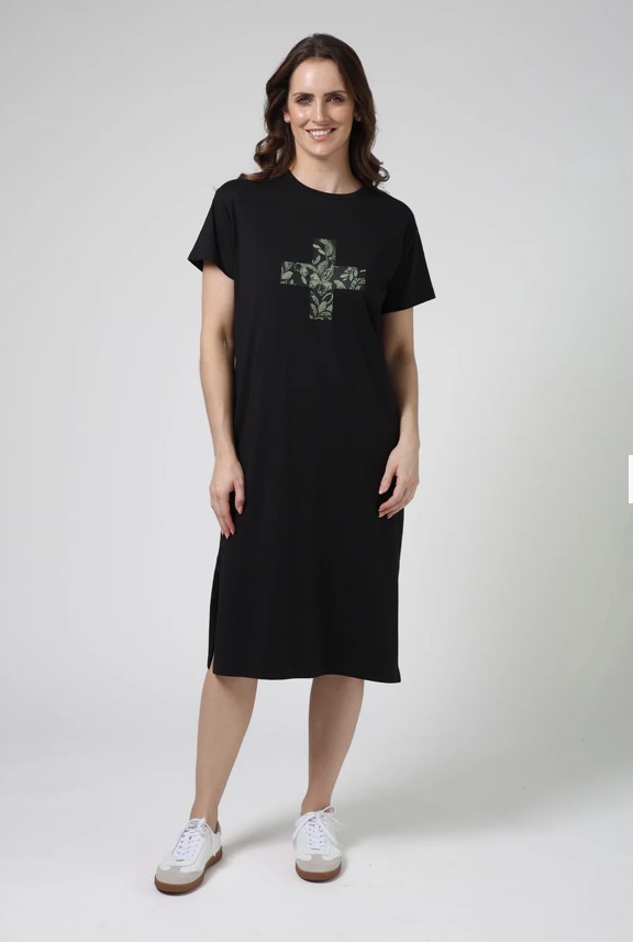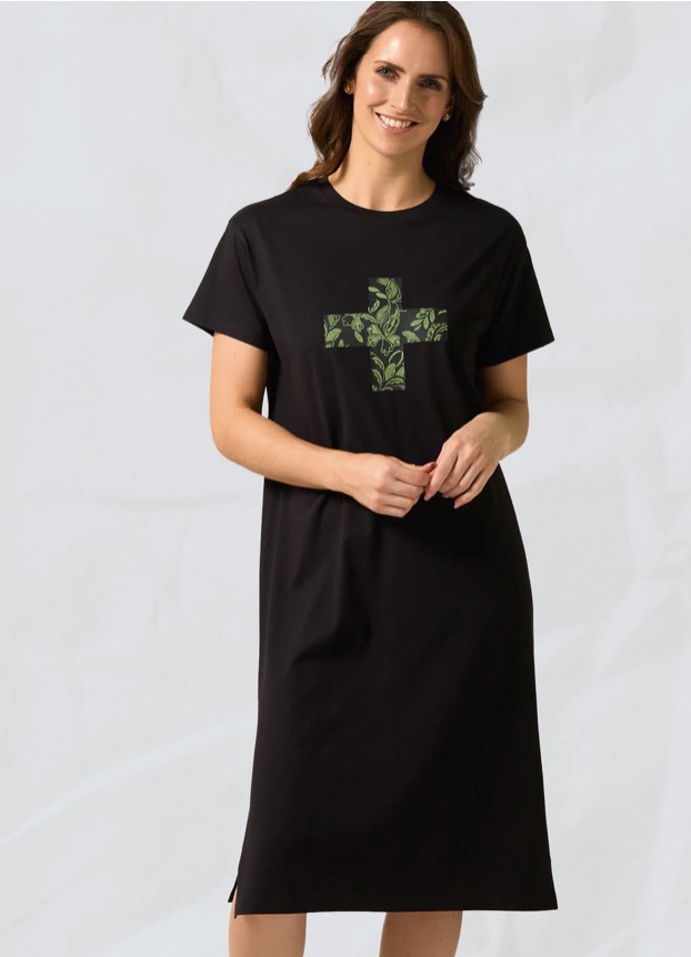 Relaxed fit crewneck, a line fall, with soft hemline shaping.
