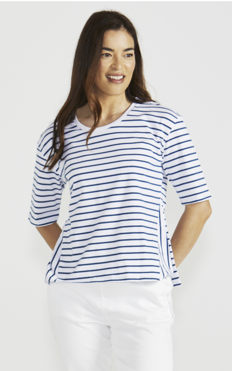 The Betty Basics Naomi Tee combines comfort with casual sophistication, featuring its shaped fit, classic round neckline, and elbow-length sleeves. Stylish and versatile for effortless everyday wear.