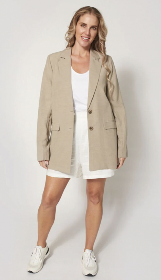 This timeless Natalia Blazer from Stella + Gemma is composed of 92% lycoell and 8% linen for a lightweight and breathable feel. Fully lined for a quality finish, this blazer is designed for lasting comfort and elegant style at any formal or casual occasion.