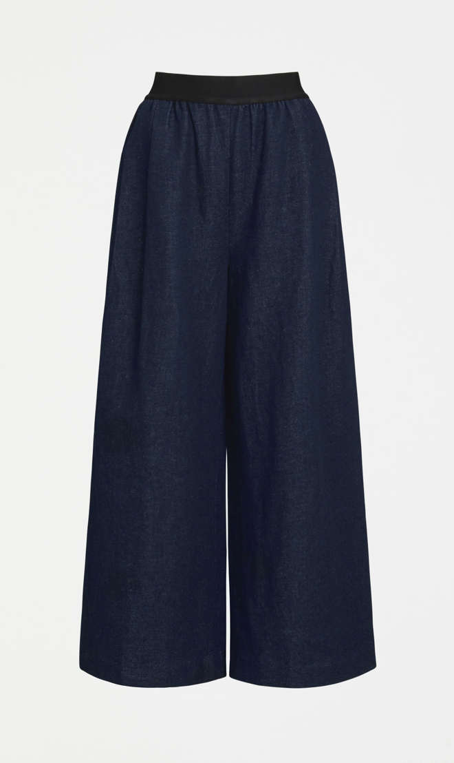 Designed for both style and comfort, the Njolle Pant features buttoned back pockets and a statement contrast, elastic, wide waistband that offers a defined waist, with a touch of ease. Crowd-pleasing side pockets add practicality to the design. Lean into the bold defined silhouette by pairing with the cropped Luft Knit Top.