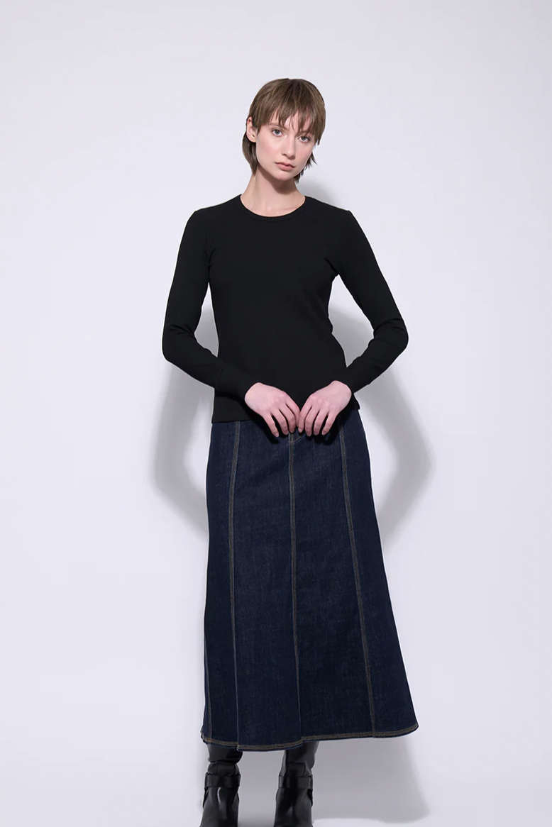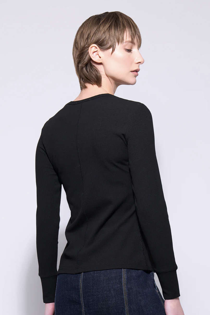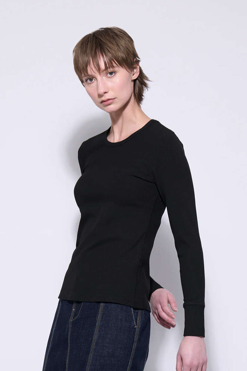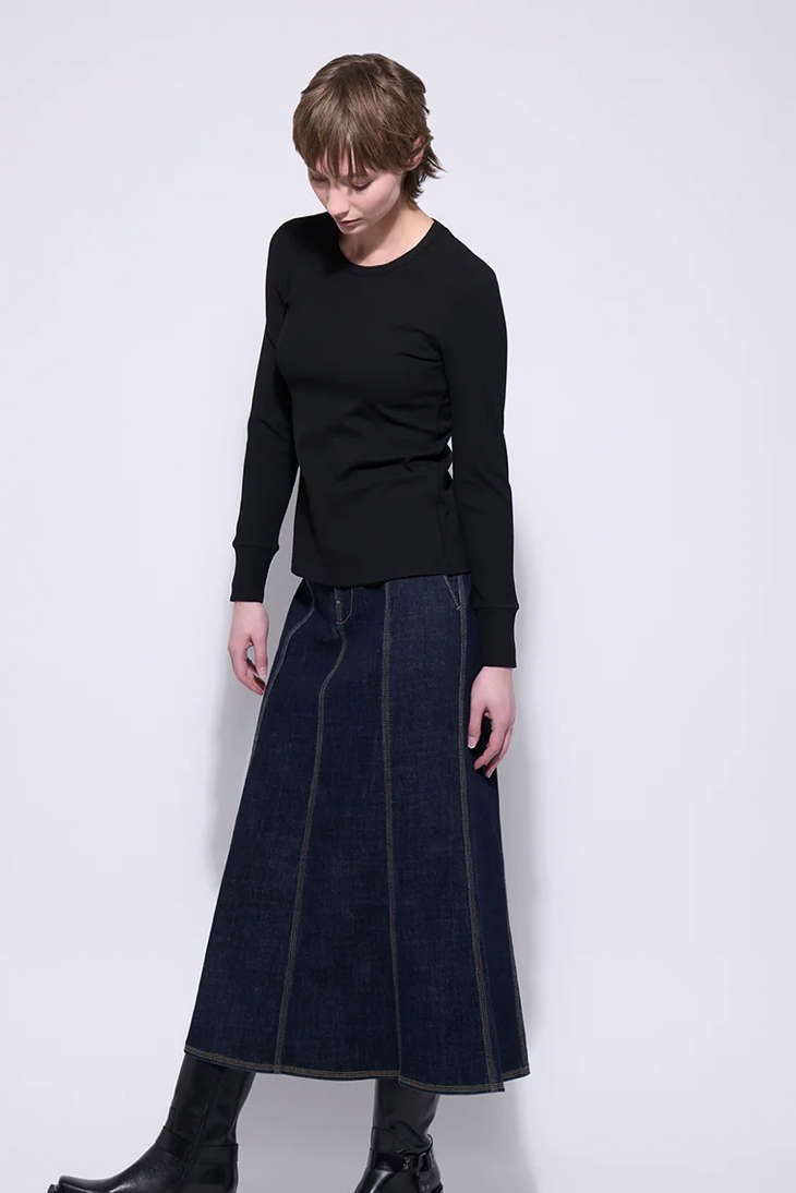 The Noah Top by Neris is an elevated wardrobe essential, this slim-fit top is made from a finely ribbed fabrication. Featuring a classic crew neck and long sleeve, ideal for pairing with trousers, skirts, or under jackets, it is a versatile piece for any season. Designed in Christchurch, New Zealand.