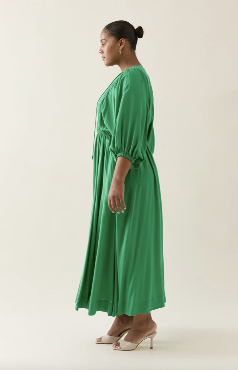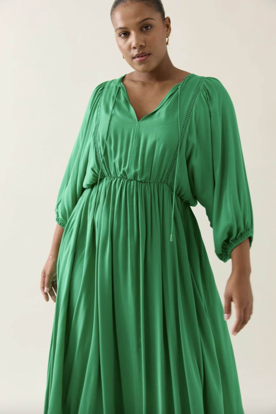 Long and flowing, the Oline Maxi Dress offers everyday comfort with an elevated twist. With soft trim, elasticated waist and full A-line skirt, it’s perfect for crisp mornings or breezy nights.