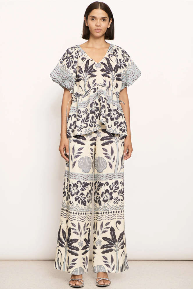With full sleeves and drawcord detail at the waist, the Paradise Tie Top is a modern take on femme styling.