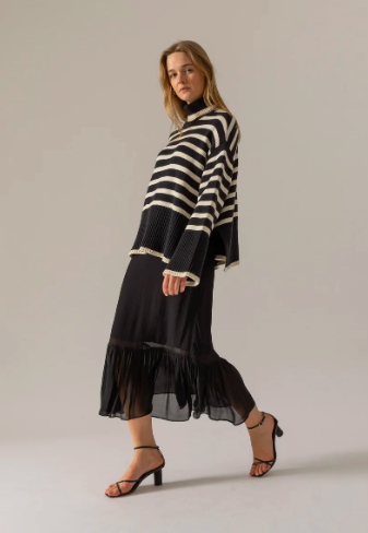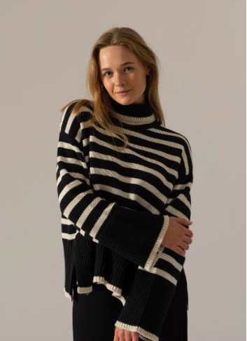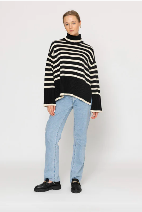 Classic stripe, knited roll neck sweater.
