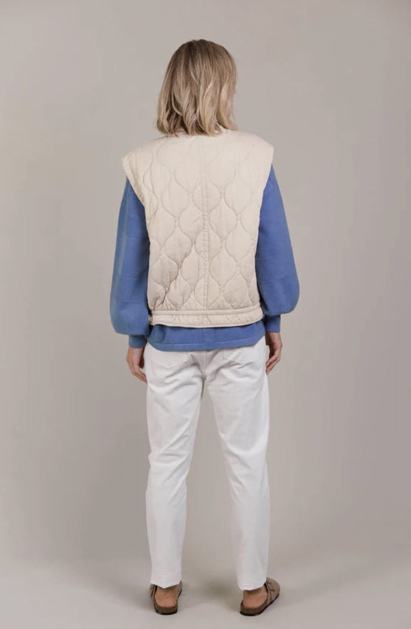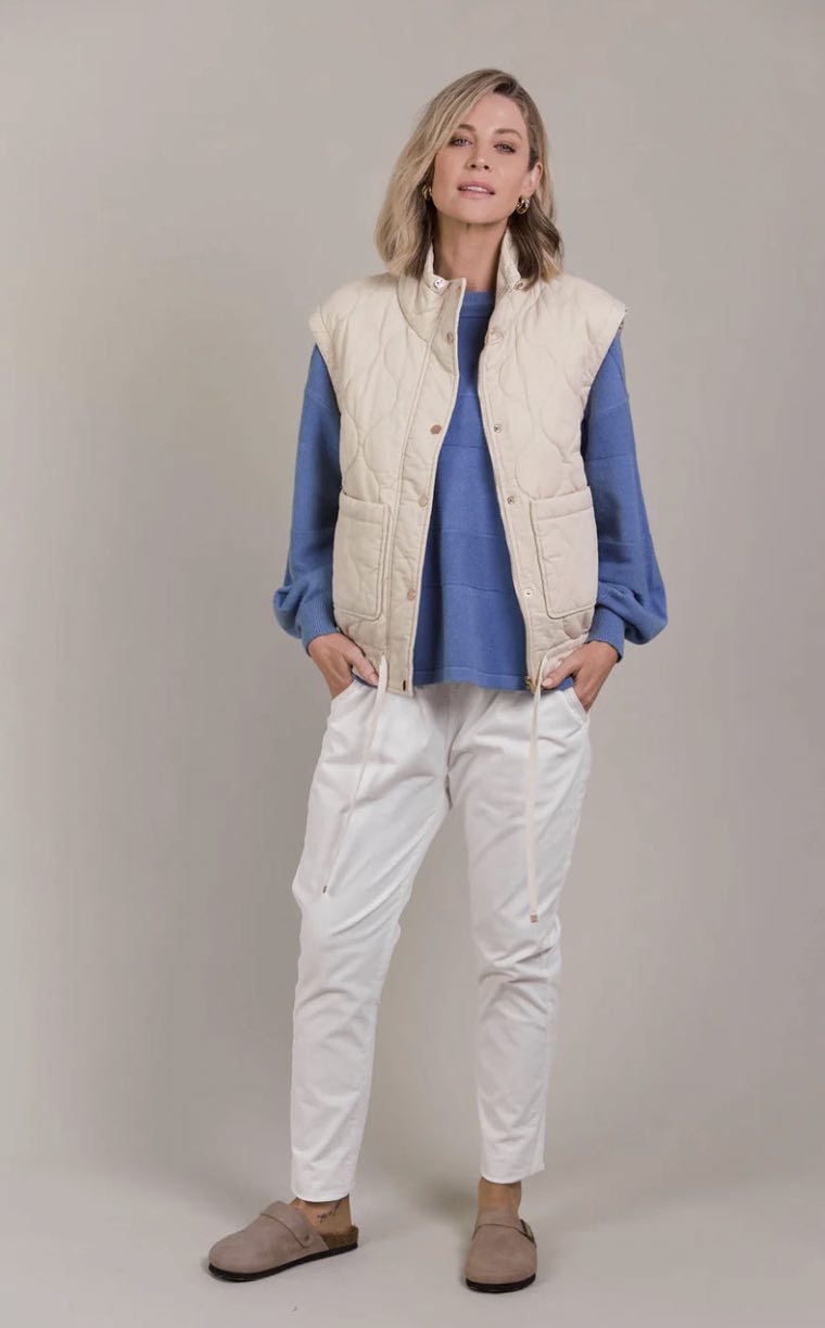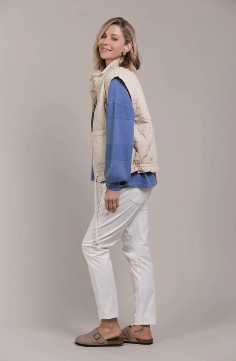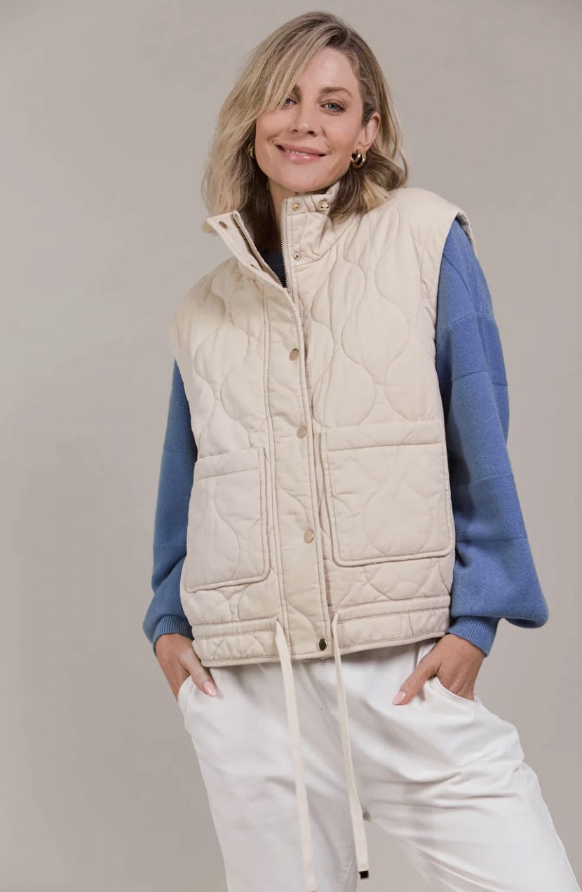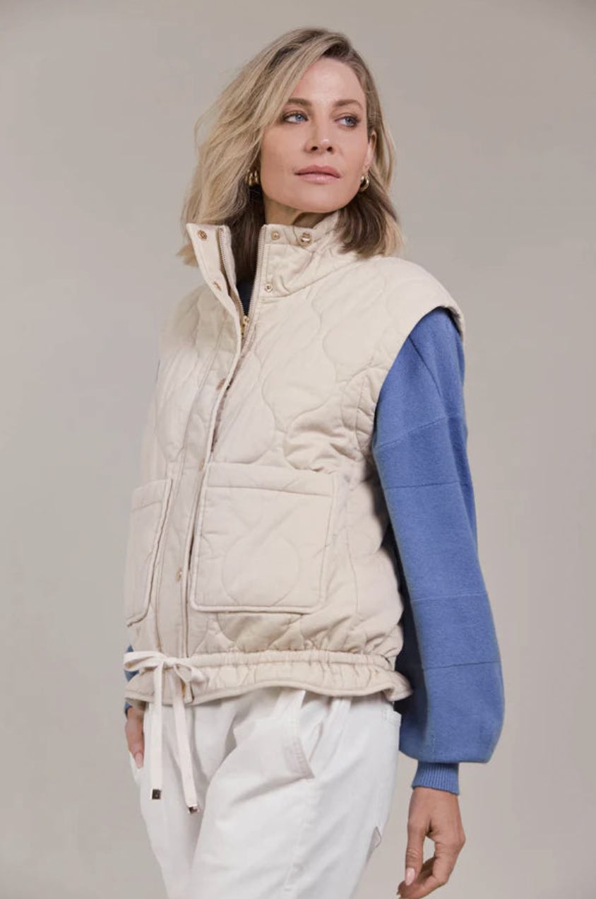Designed with purpose, the Pepi Vest is crafted from 100% cotton and features a practical zip and press stud closure, convenient patch pockets, and an adjustable drawstring for the perfect fit. Quilted detailing adds a soft, textured touch, giving this puffer a unique look. A new essential you didn’t know you needed, it layers effortlessly over activewear or loungewear for the ideal throw-on style.