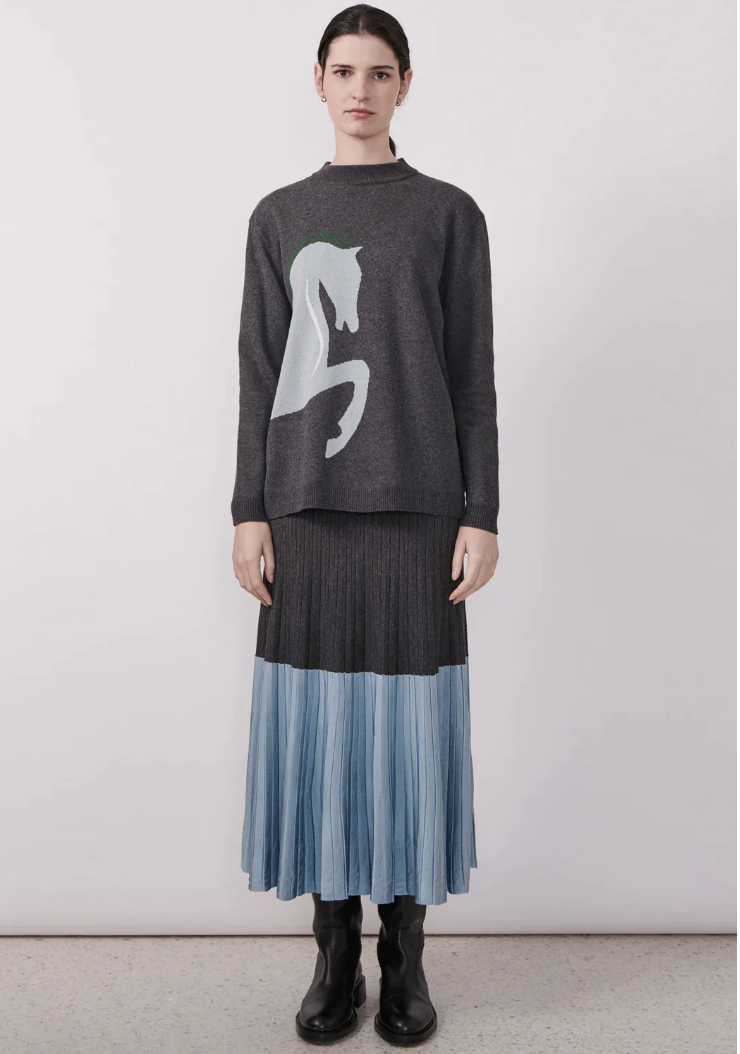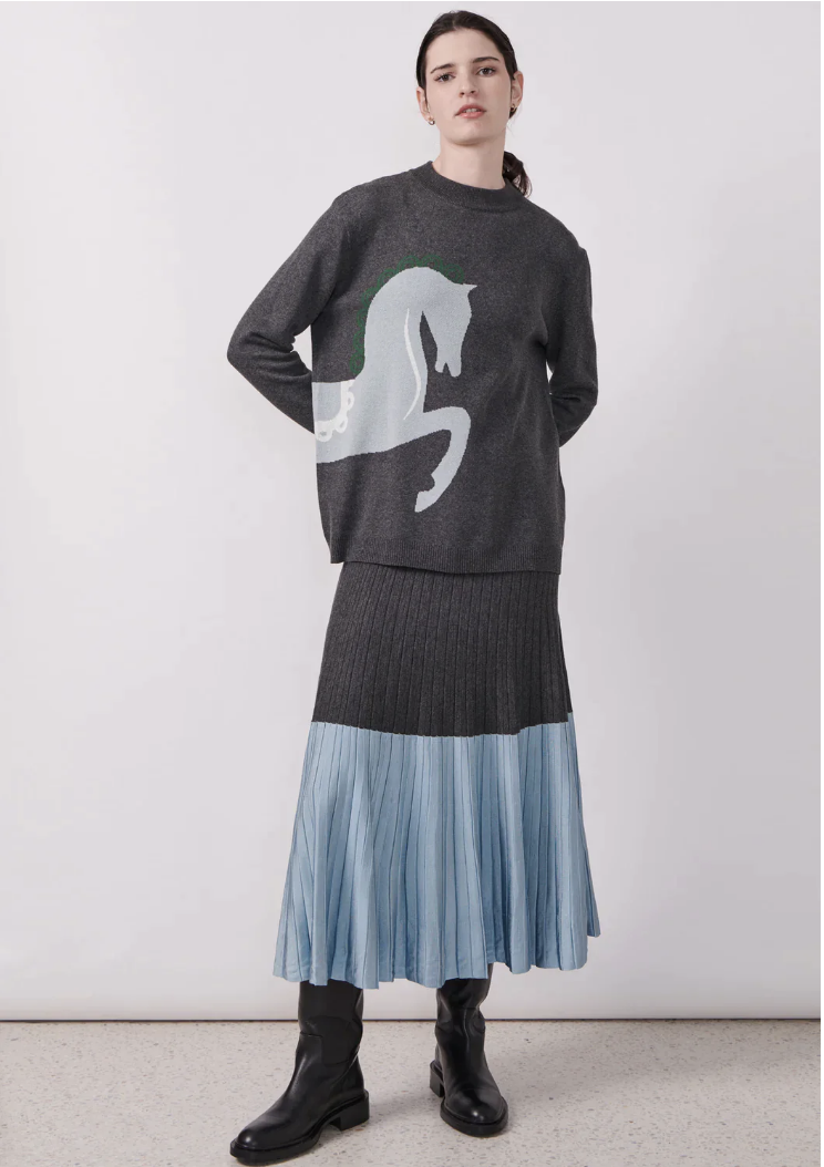 Featuring an exclusive in-house design, the Pony Intarsia Knit is a unique piece in 100% cotton.