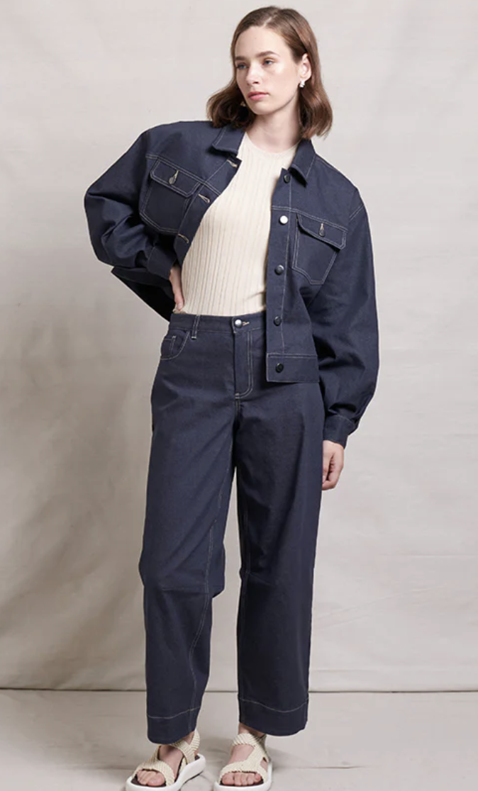 The Pump It Up Jacket by Neris is a contemporary wardrobe staple that will transcend seasons. Crafted from a mid-weight stretch denim that’s light enough to see you into the warmer months, it features a wider sleeve that gathers in on the cuff and is a slightly cropped and boxier fit with top stitch detail.