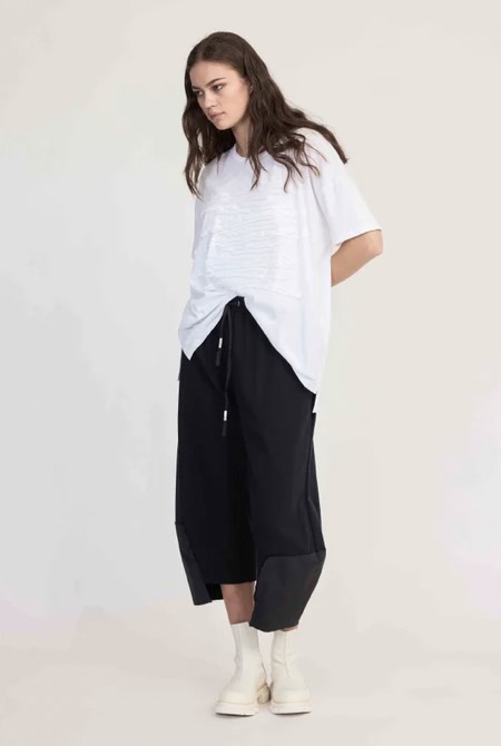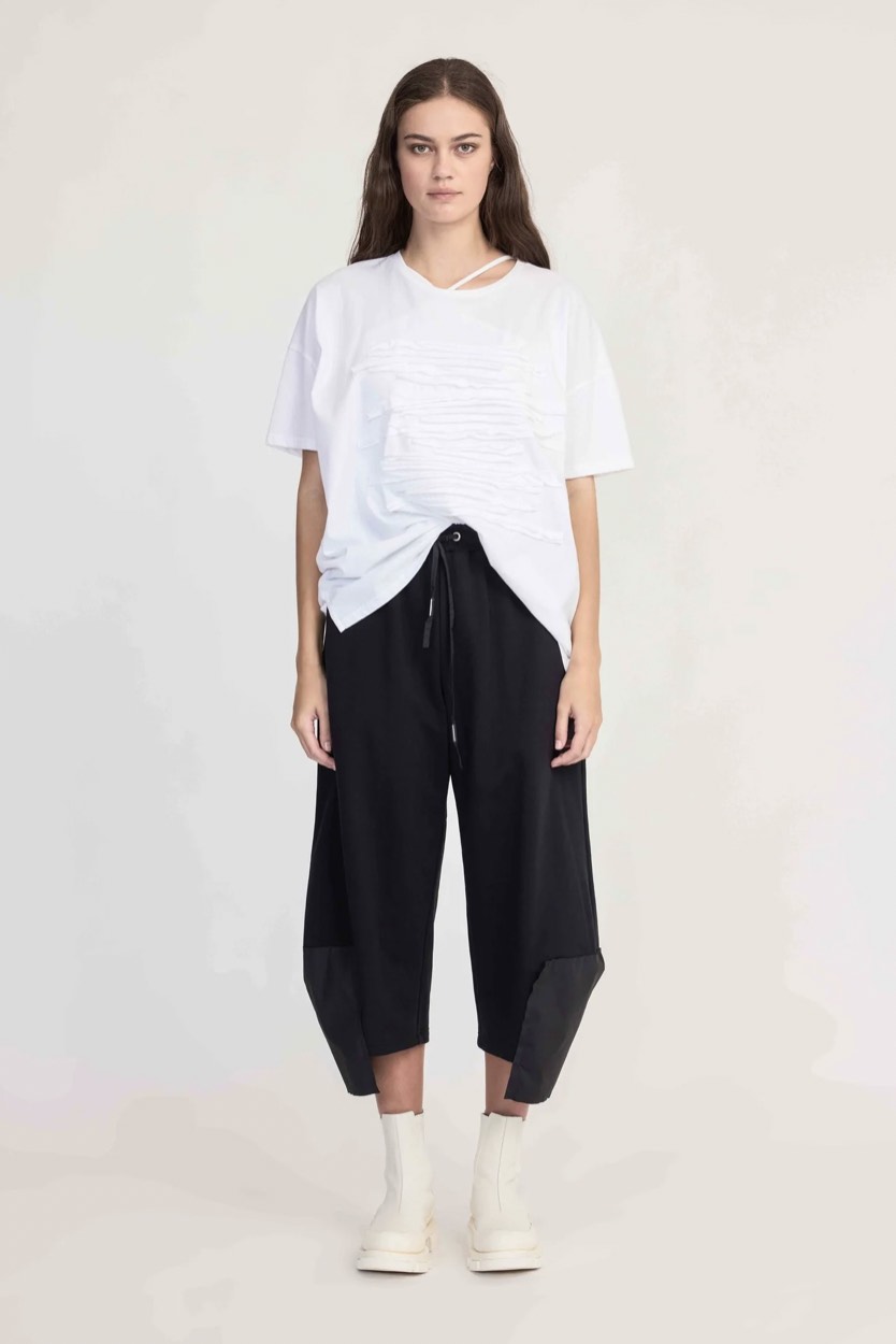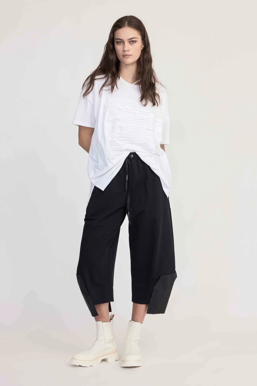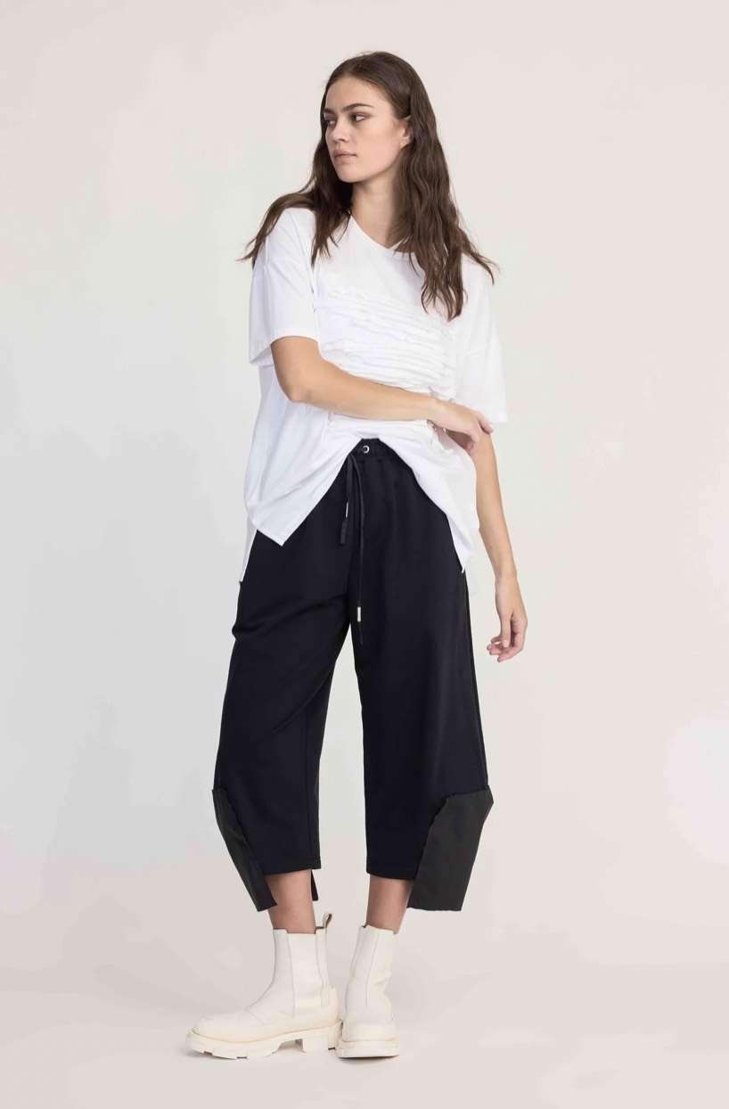 Integrate the Proceed Pant into your wardrobe with ease and consideration, now in our favourite 10 Pieces cotton. An exposed soft elastic waistband draws the wide fit, with a drawcord for detail and ample pockets. The pant hem features a rectangular panel making a stepped hemline creating immediate aesthetic interest and transforming a simple look.