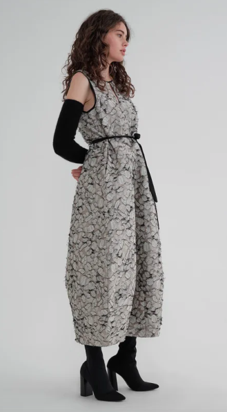 The Refined Incursion Dress, made in a beautiful Wool jacquard as well as in our classic wool suiting, is a must-have for the wardrobe and has a cocoon-like shape, making it the ultimate relaxed dress to layer or wear as a stand-alone piece. The stunning Textured jacquard fabric allows the silhouette to hold volume created against the body and cocooning at the hem, while the wool suiting creates a more relaxed shape. The fine detail of panelling down the body and high neckline gives it a point of difference. Pair with Fitted Translucent Tunic, matching Sequence Jacket and a pair of chunky boots for casual weekend/evening looks or dress it up alone with a pair of heels.