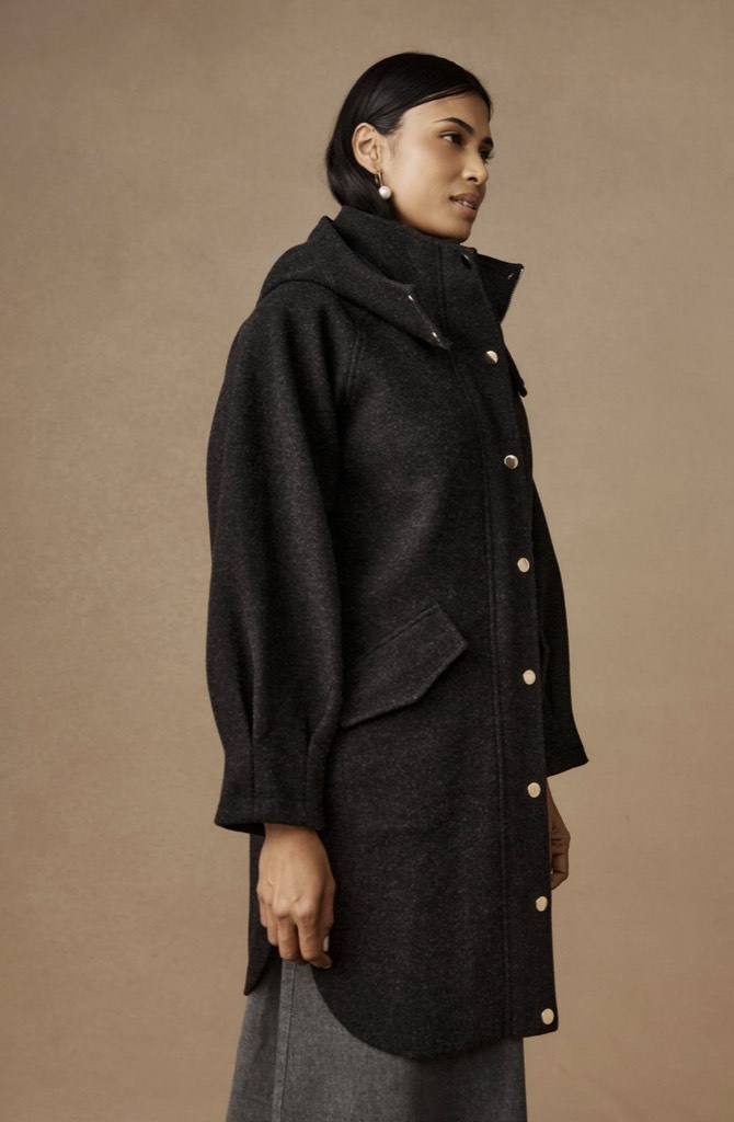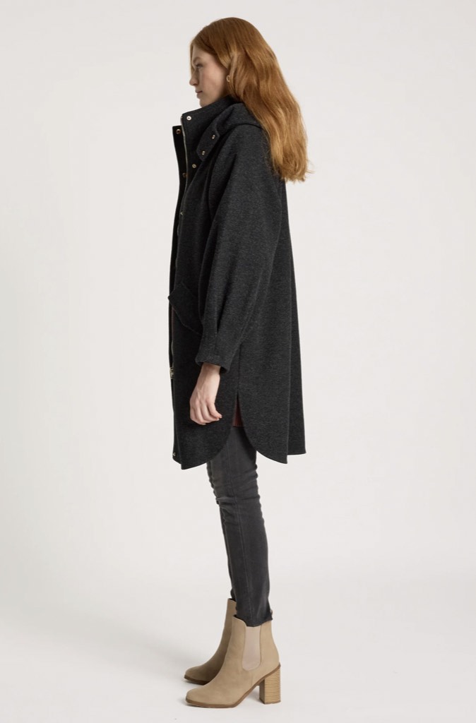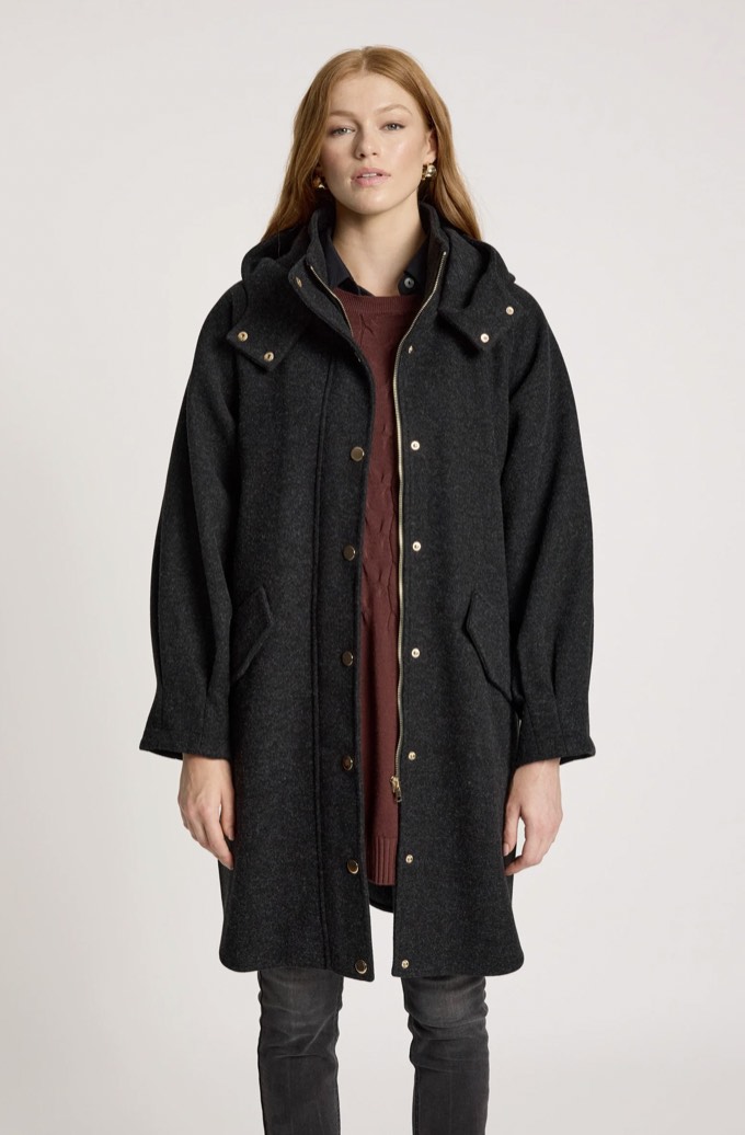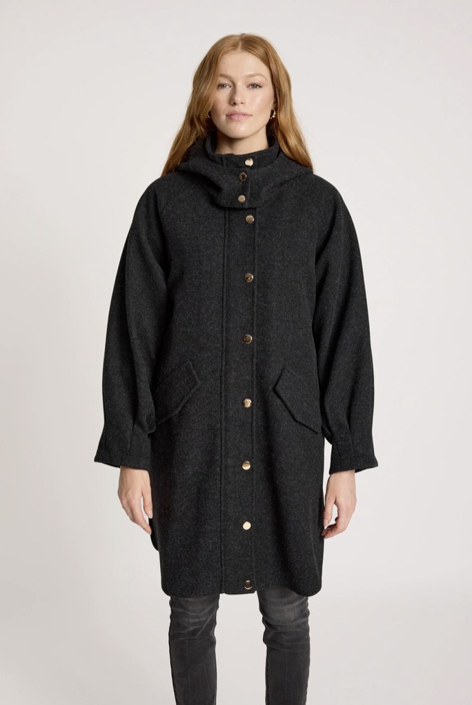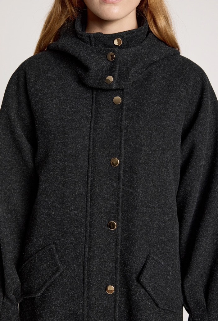 A cosy, mid-length jacket designed for relaxed winter days. Featuring a sporty silhouette with a practical hood, metal hardware details and a zip-front closure, this style balances warmth with everyday ease. Curved side seams and tapered sleeves add subtle shape.