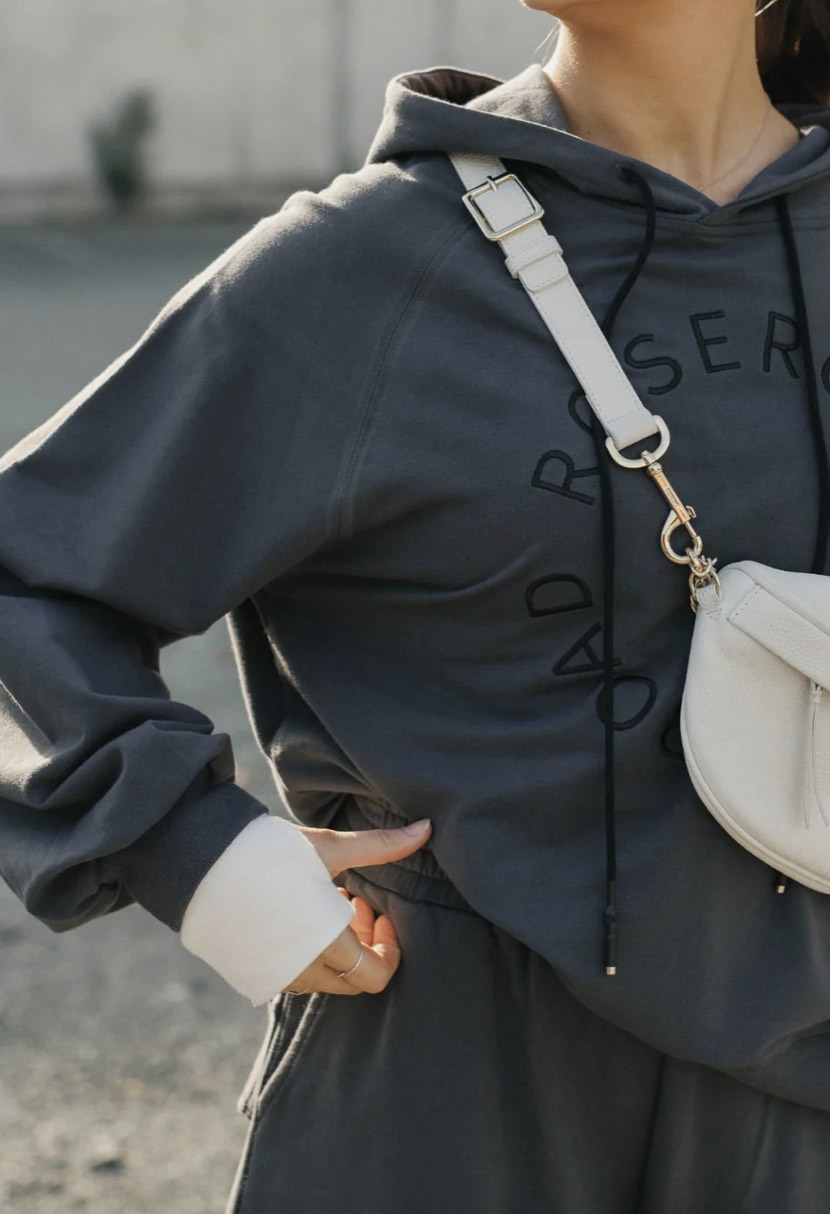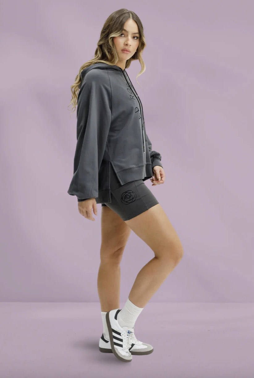 Cut with an oversized fit, it’s designed to throw on and move through the day in, without overthinking it. Featuring a drawcord hood, fitted cuffs and a relaxed high-low hem, it delivers laid-back style that works from post-Pilates wind-downs to slow days at home.