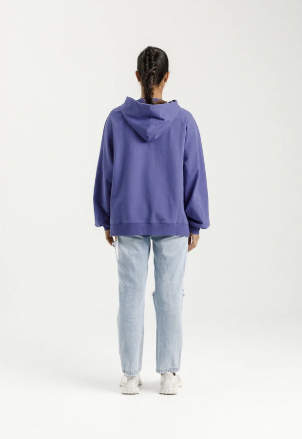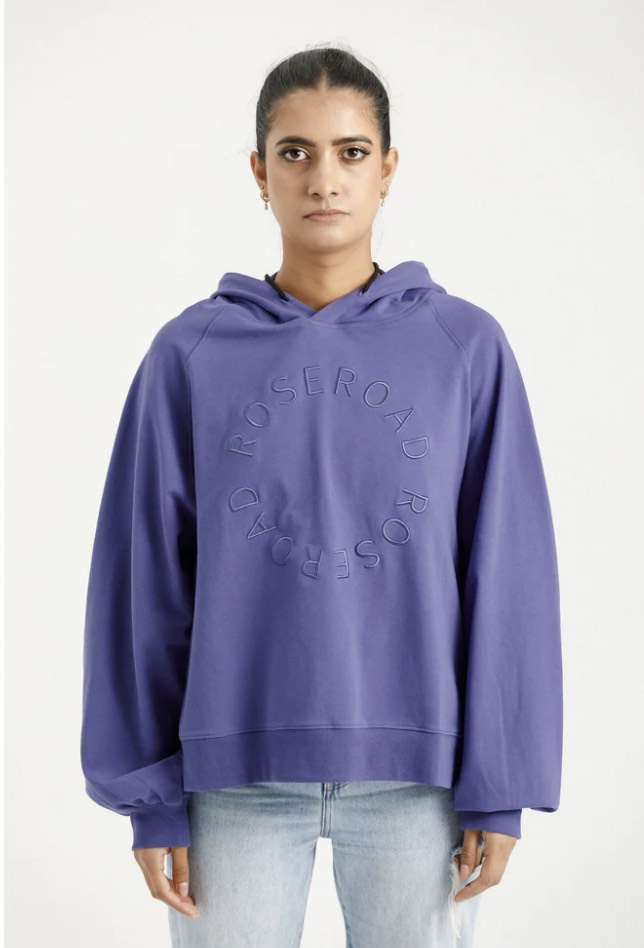 Featuring a drawcord hood, fitted cuff and a high low hem this sweater is perfect for that laid back look and feel. Complete with our Rose Road Circle Print embroidered on the front.