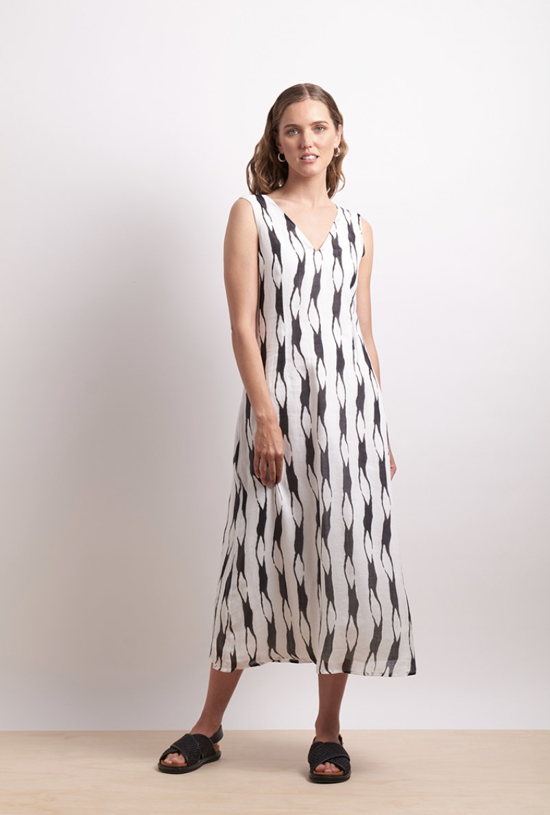 The Soft Focus Dress is a floaty, semi-sheer maxi with a softly flared A-line