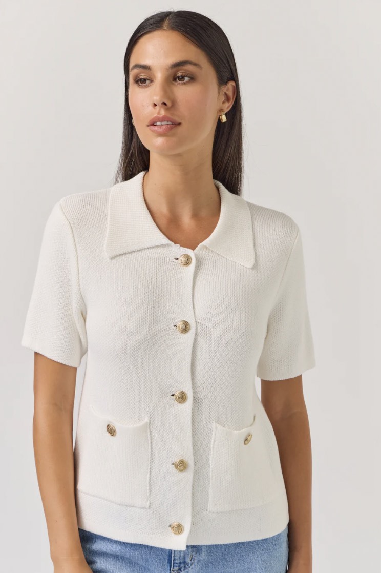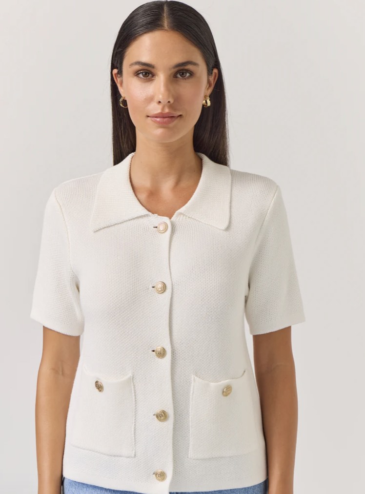 Inspired by classic Chanel, this waffle-knit has just the right amount of feminine charm. Wear with the buttons closed as a top, part open as you would a shirt, or completely unbuttoned for an easy layer over a cami or tank.