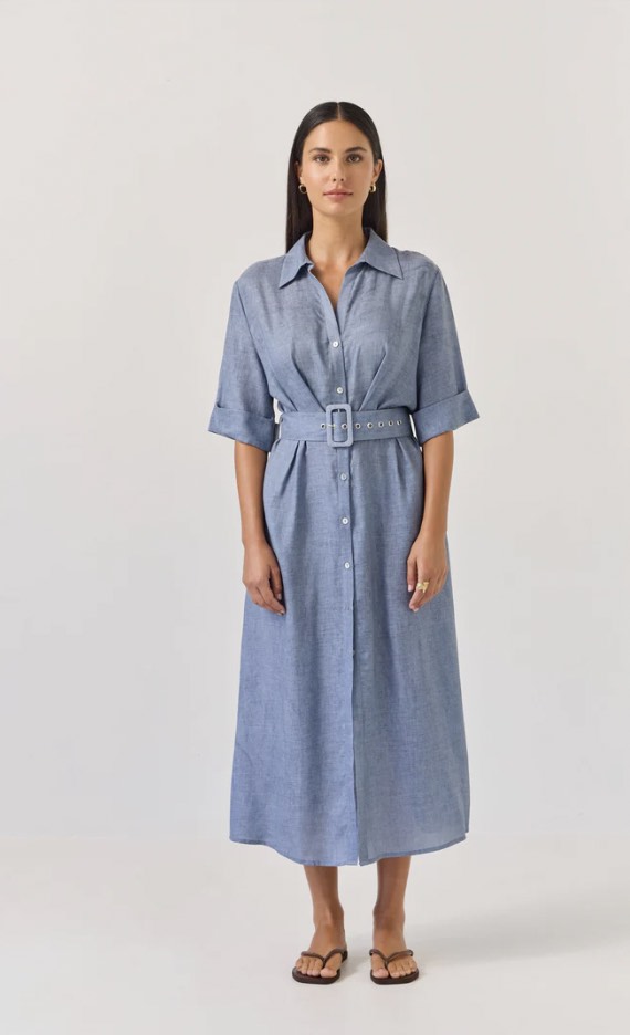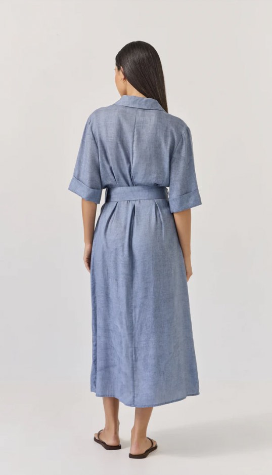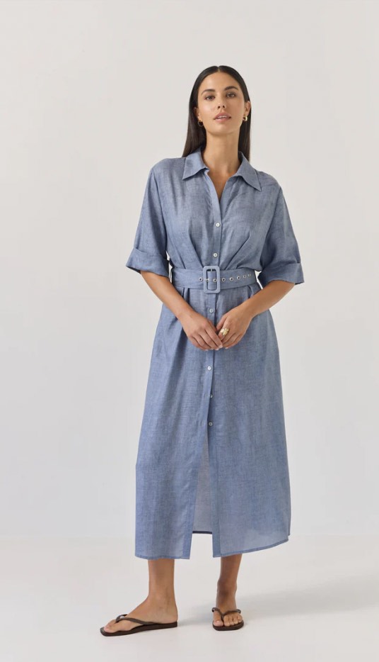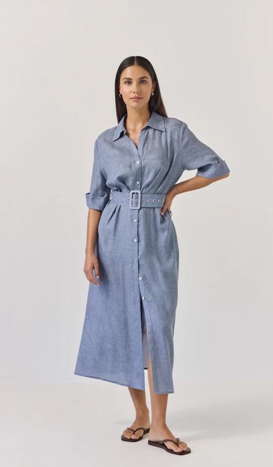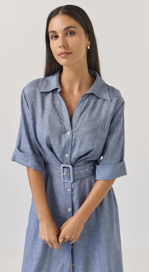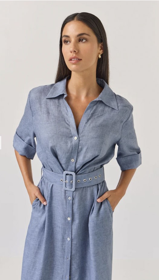 The beautiful Sunray Dress now in a solid colour option. This shirt dress style suits all occasions with a cutaway revere-style collar, she opens beautifully into a v-neck look before nipping in at the waist and falling into a soft A-line shape through the skirt. Dress up or down with your choice of footwear.