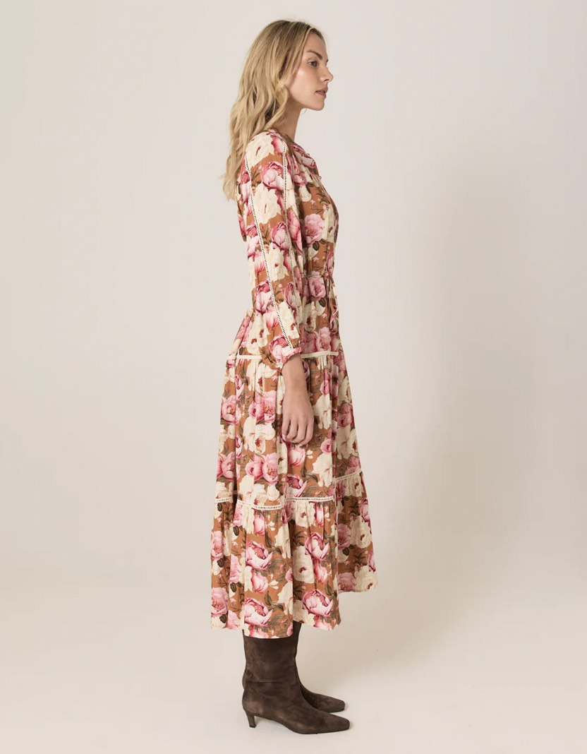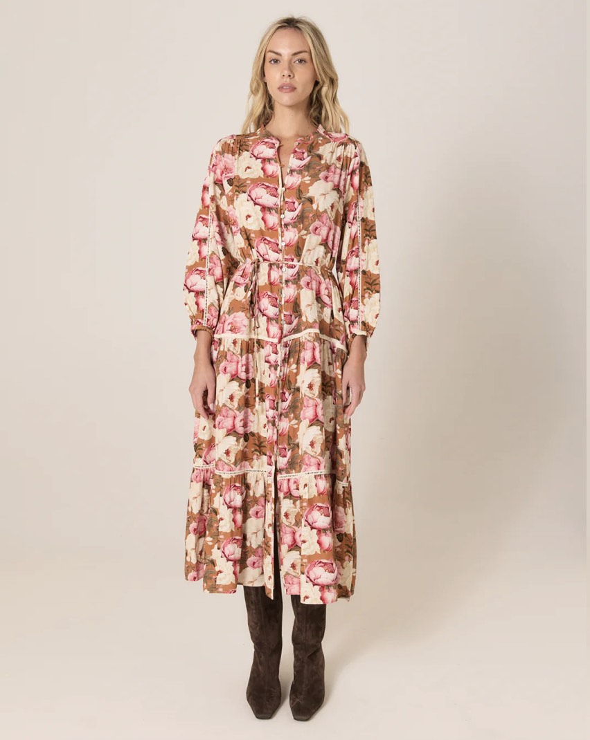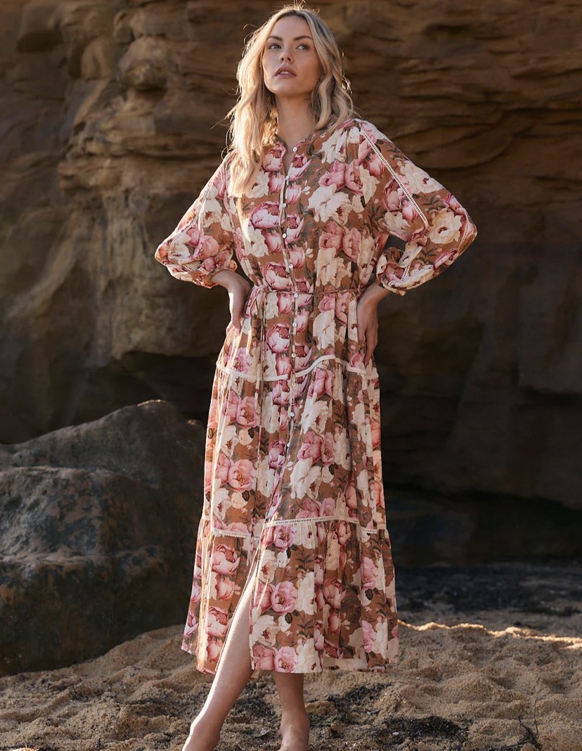 The Sweet Emotion Dress is a refined long sleeve dress designed for effortless elegance. Featuring elastic sleeve openings, shell button details, and ladder lace trim, it includes a detachable tie belt at the waist for a relaxed silhouette. A transeasonal favourite.