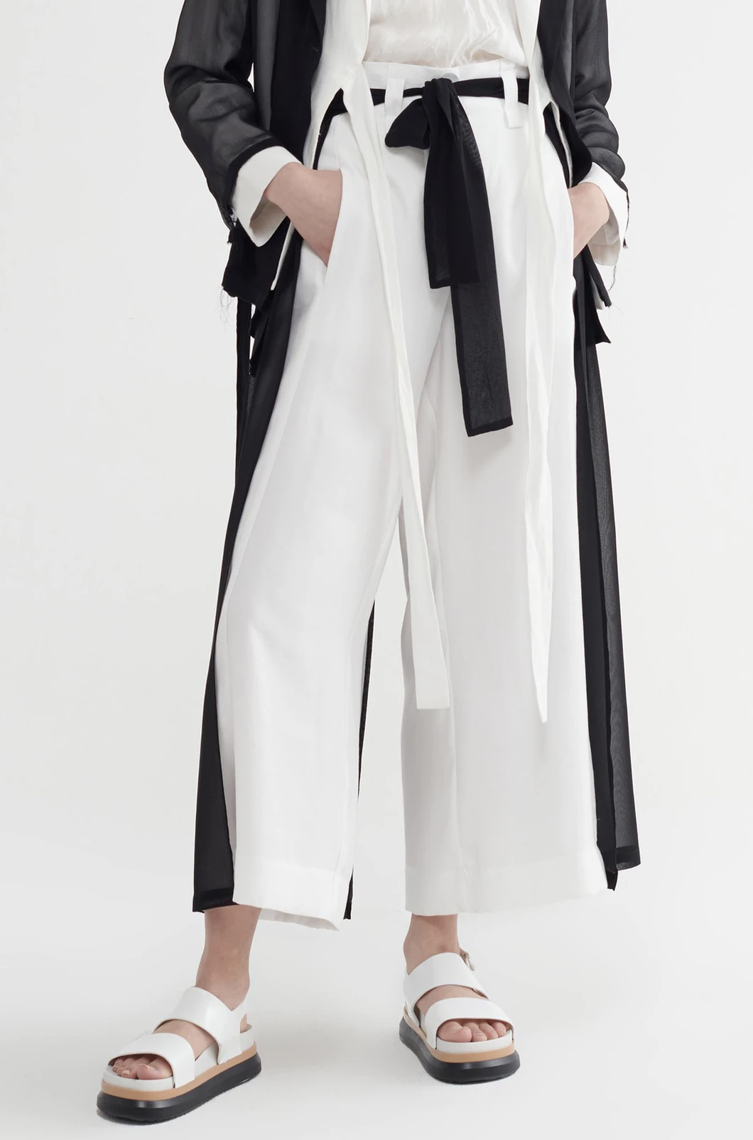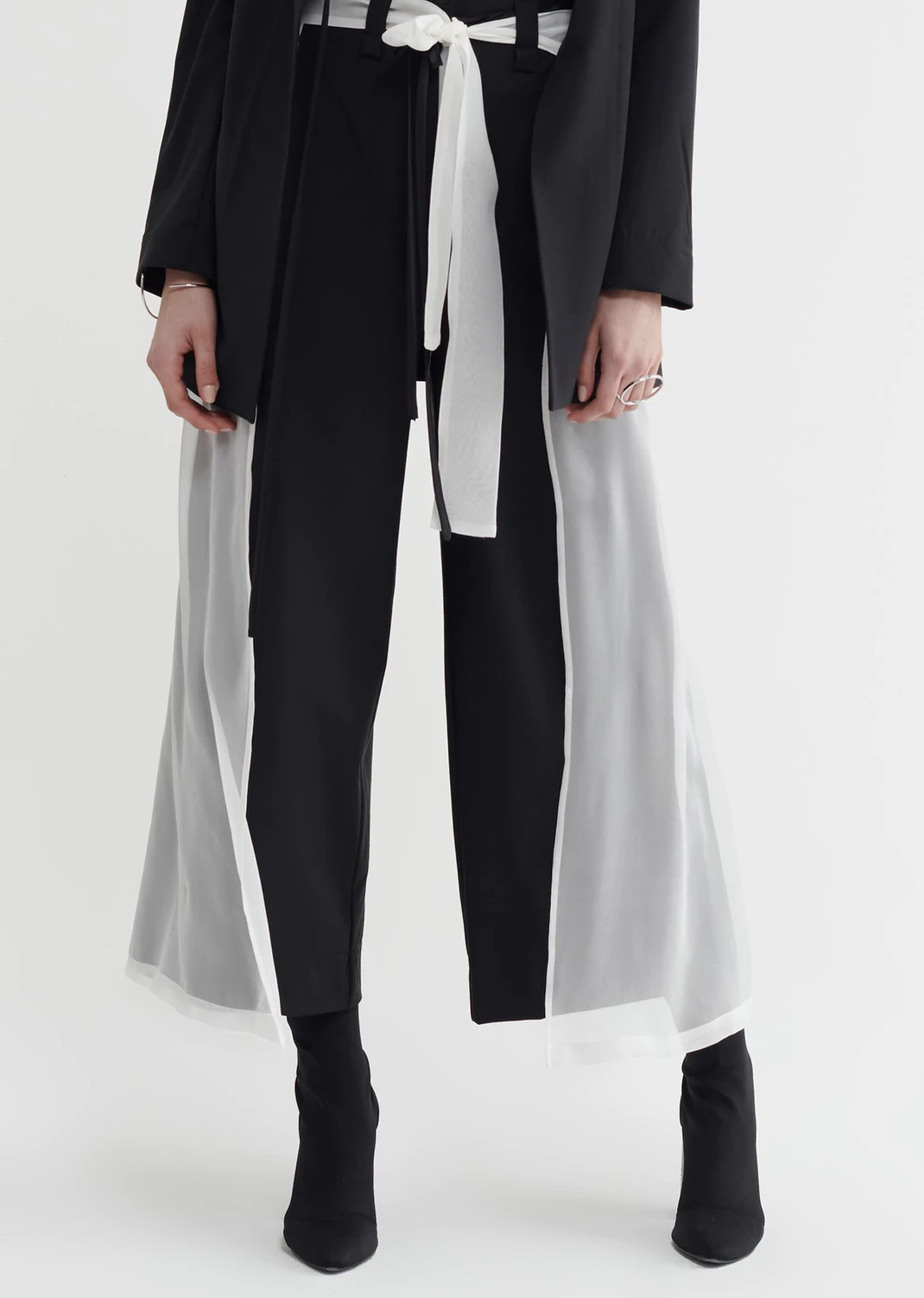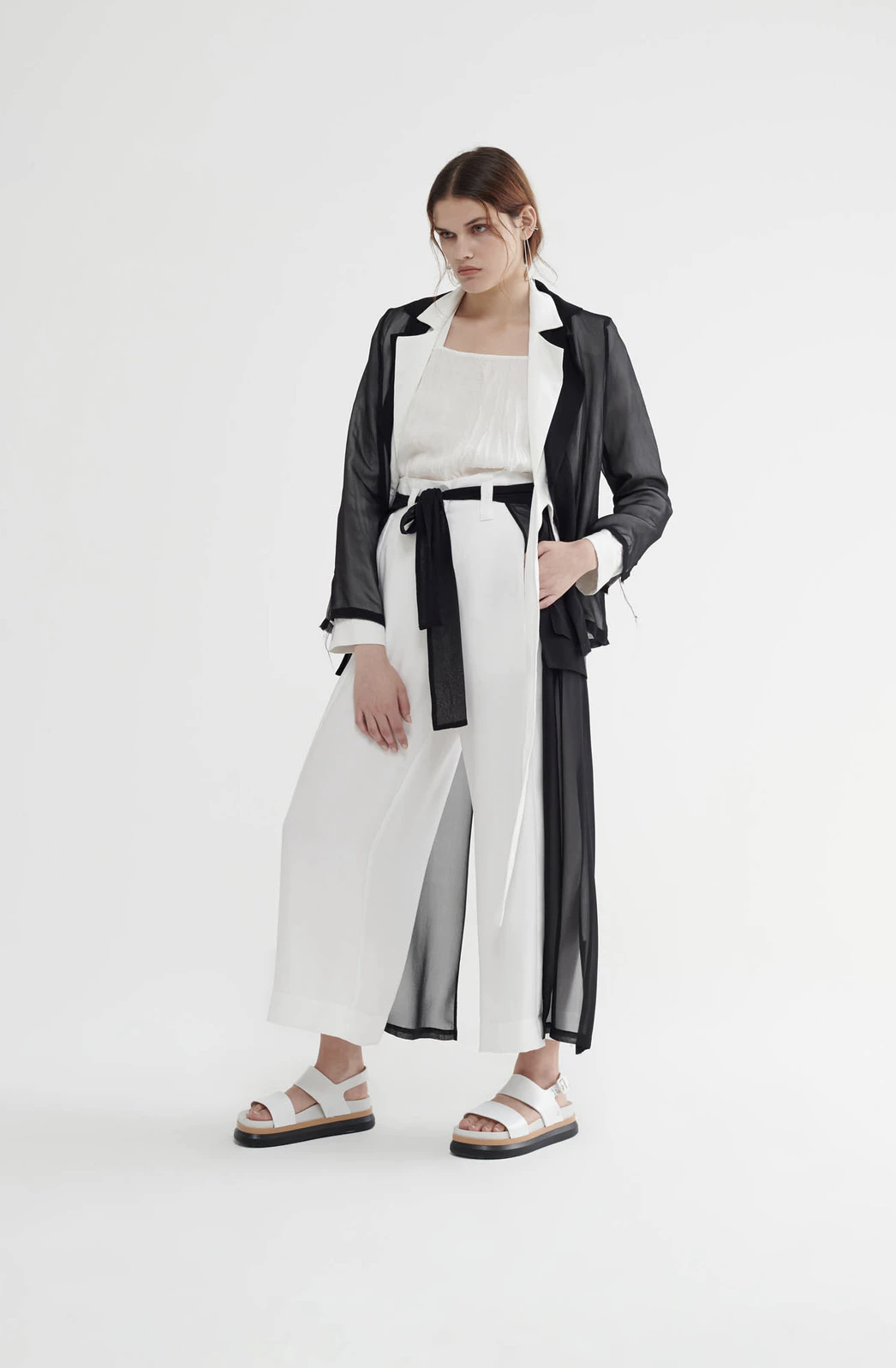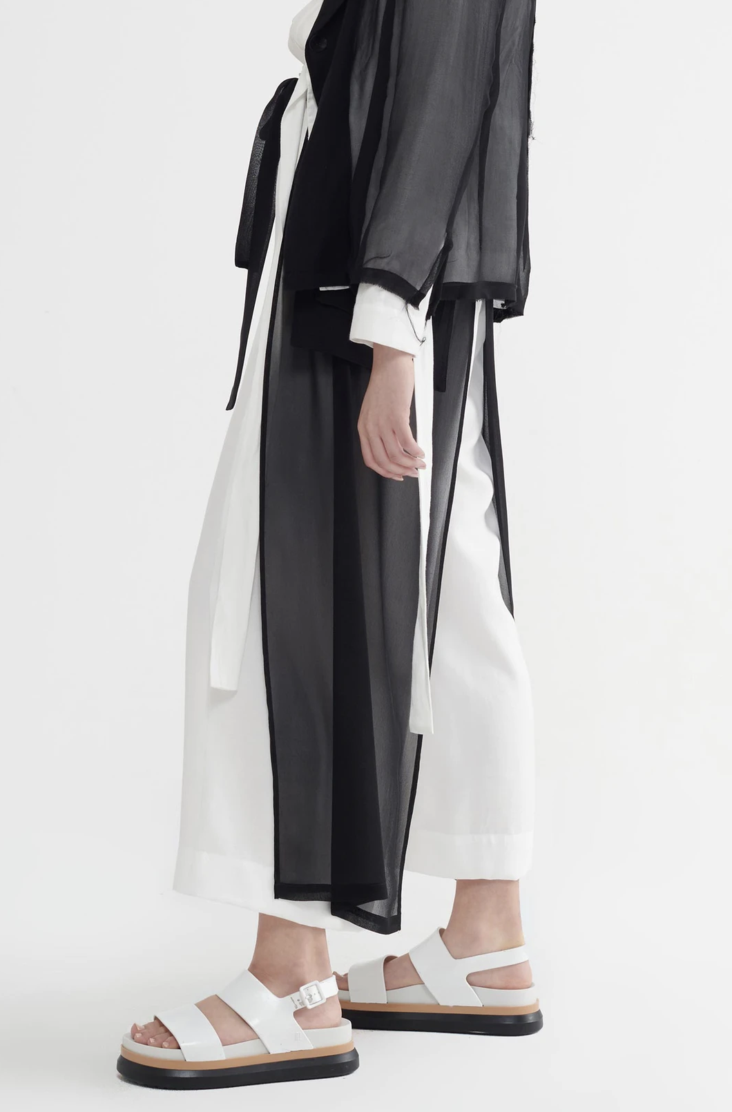 The External Pocket Wrap is the ultimate styling accessory. Two large rectangular pockets are attached to a silk tie. It’s silk fabrication and transparency enable it to layered over a variety of different pieces from the Belted Transpire Pant and Narrative Skirt to cinching in jackets like the Transparency Jacket. Have fun with this piece and make it your own!
