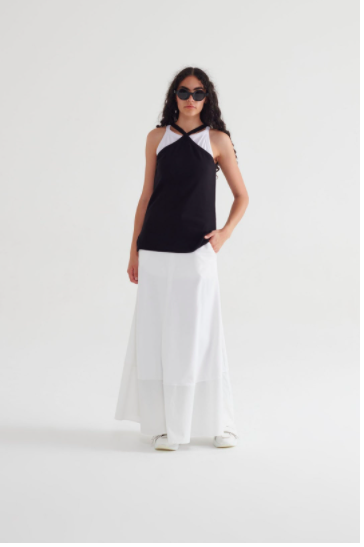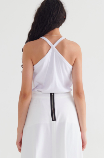 Our much loved Extension Tank style top is now redesigned in a cotton rib, giving extra stretch and comfort. With wider straps this top is now the perfect summer go to piece. This tank features cross over straps to create a V-neckline on one side and a higher round neck on the other side – wear it either way around depending on your look or what you’re laying it with. This piece is perfect to layer under all your favourite taylor looks, the perfect cami for all year round!