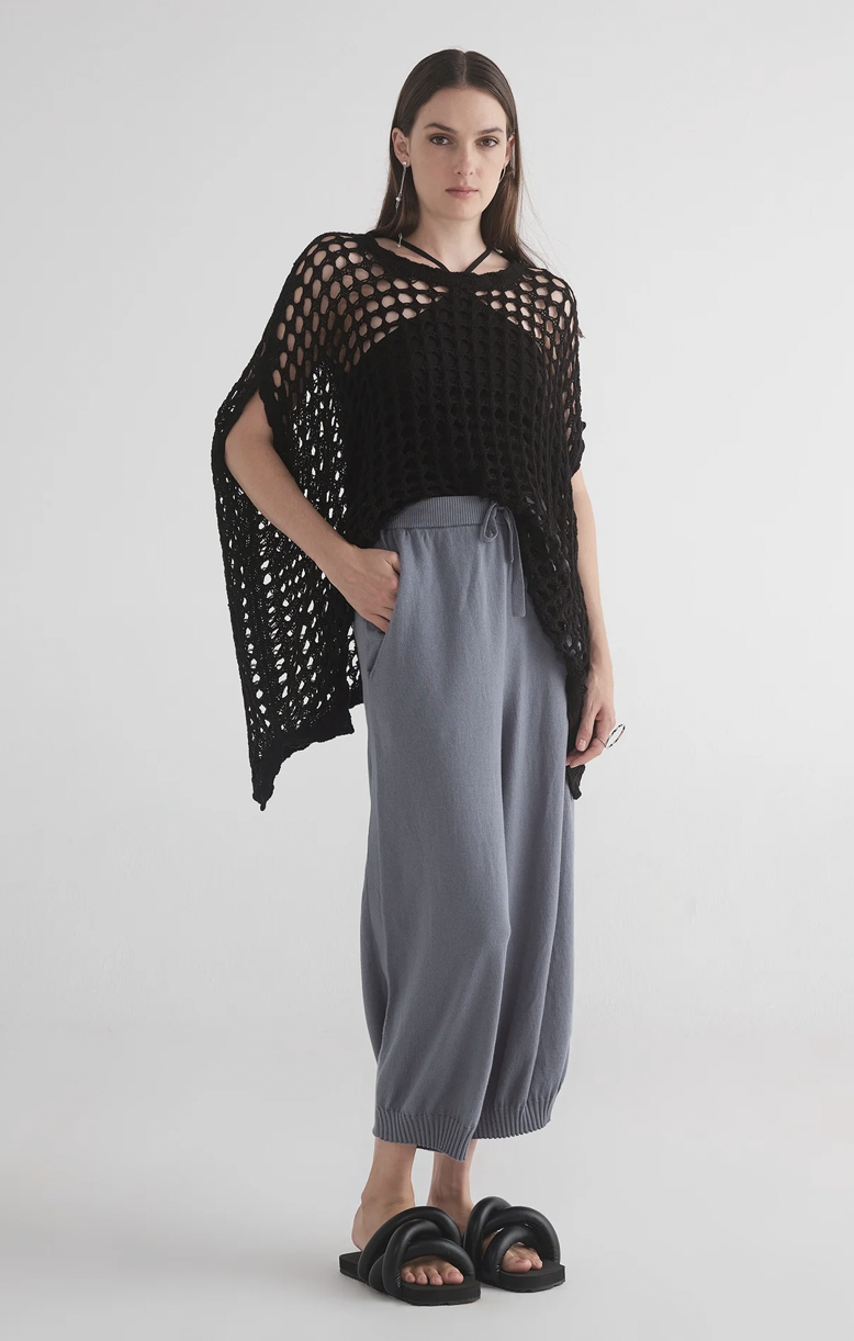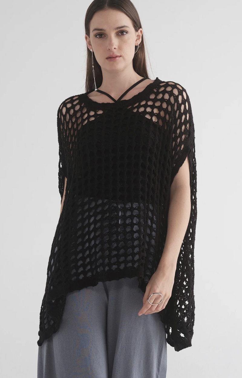 During the warmer months, the Textured Asset Sweater is an an easy throw-on piece of knitwear becomes a wardrobe staple once the sun goes down. The rectangular and boxy shape of the Textured Asset Sweater means it creates a caped sleeve when providing much-needed coverage. The sweater has an open weave knit structure panel adding some subtle difference to the other pieces. Layer over the viscose styles like the Hinder Top and Proceed Pant to instil some varying texture.