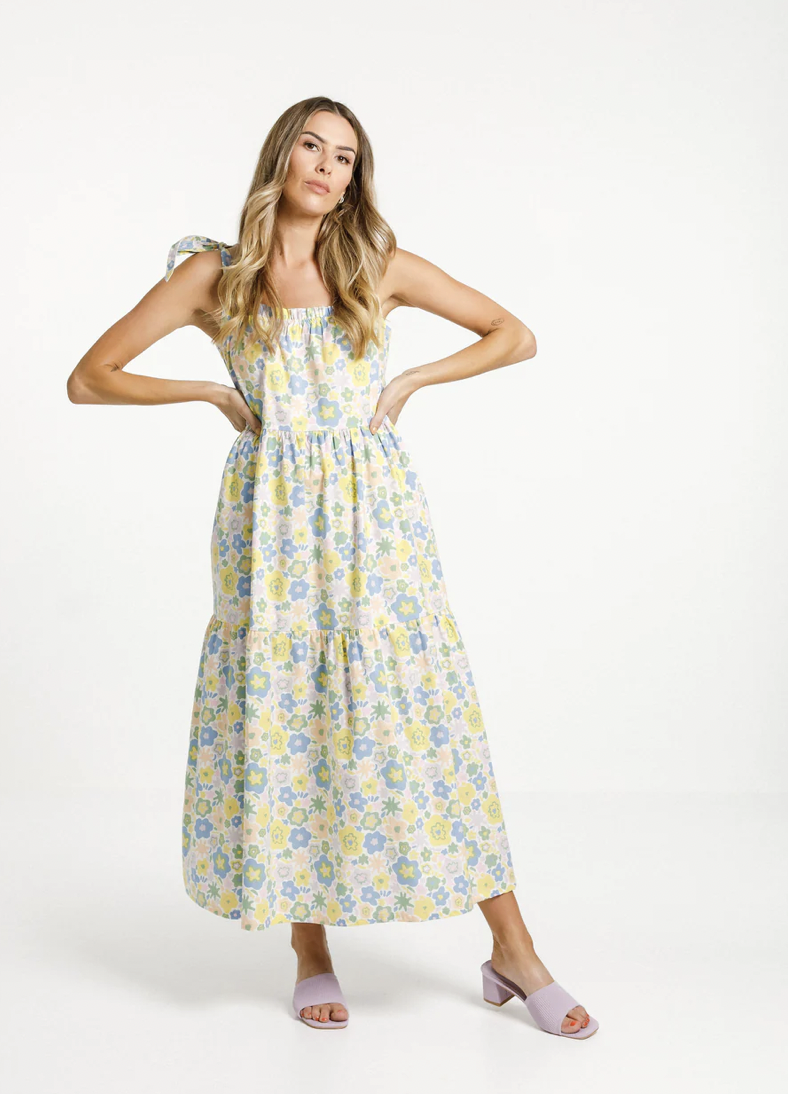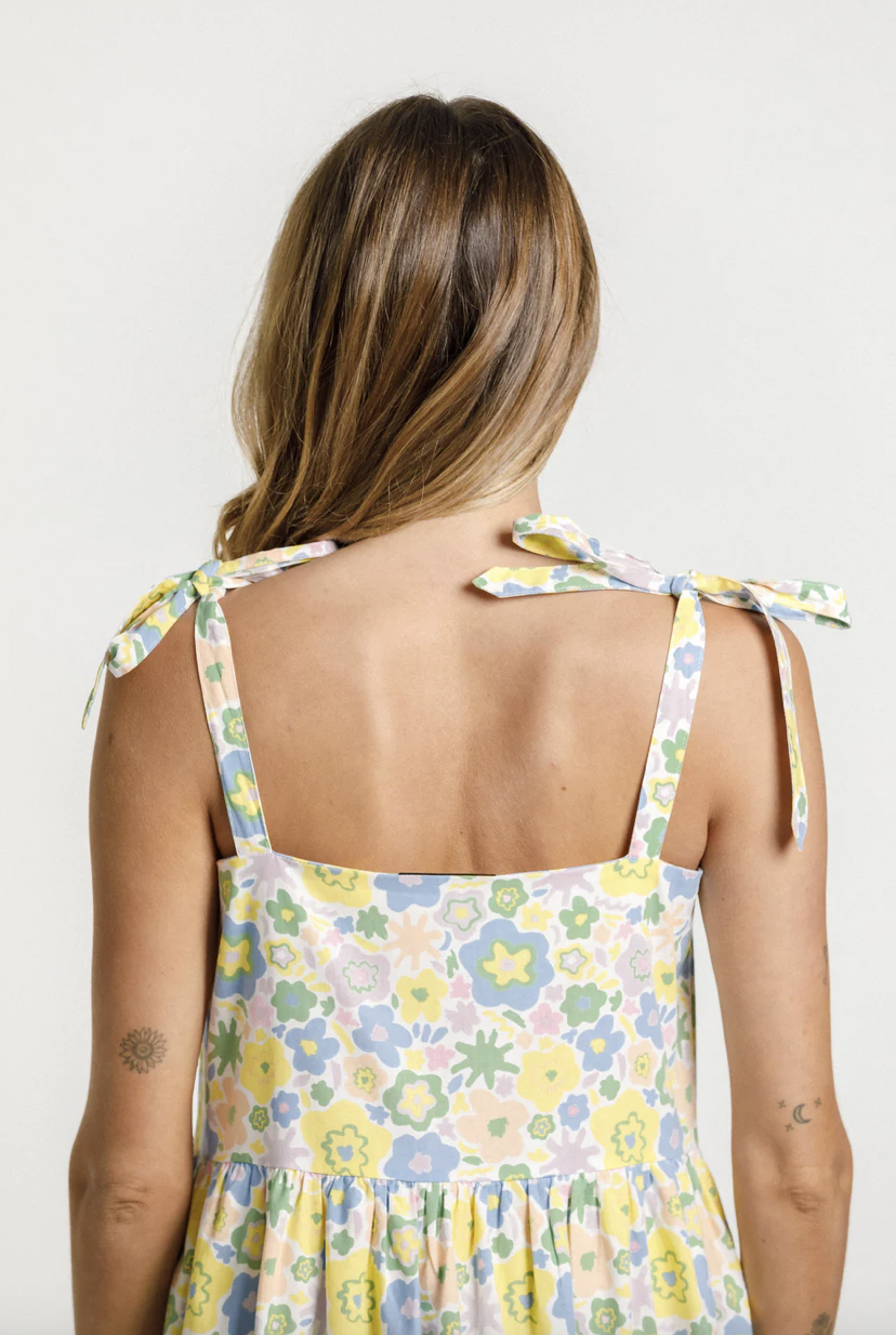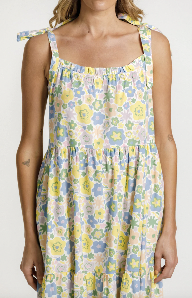 Our most popular Ziggy Dress has been updated to feature self fabric ties on the shoulders.