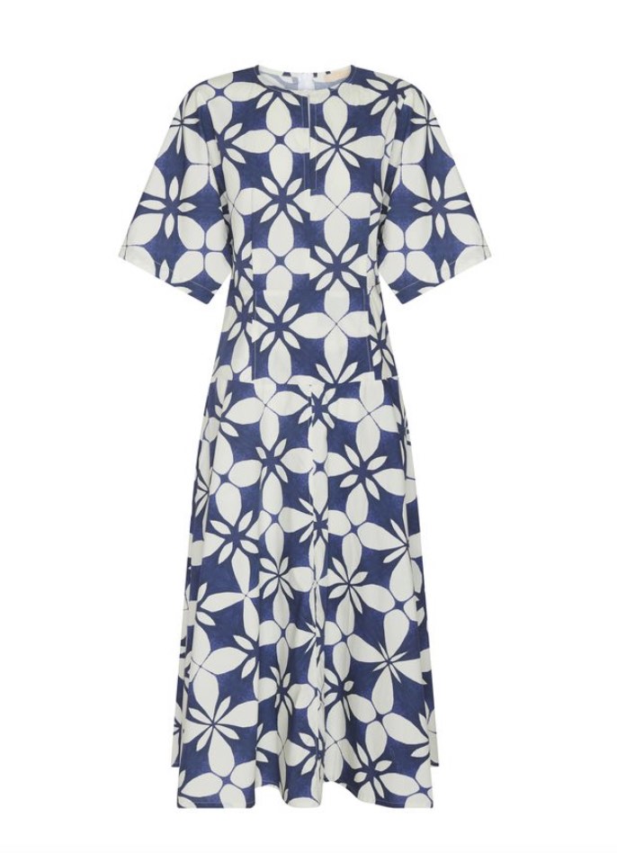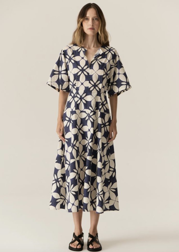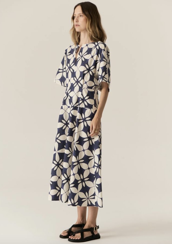Featuring a stunning exclusive print, the Turin Dress makes a statement in a flowing midi dress silhouette.